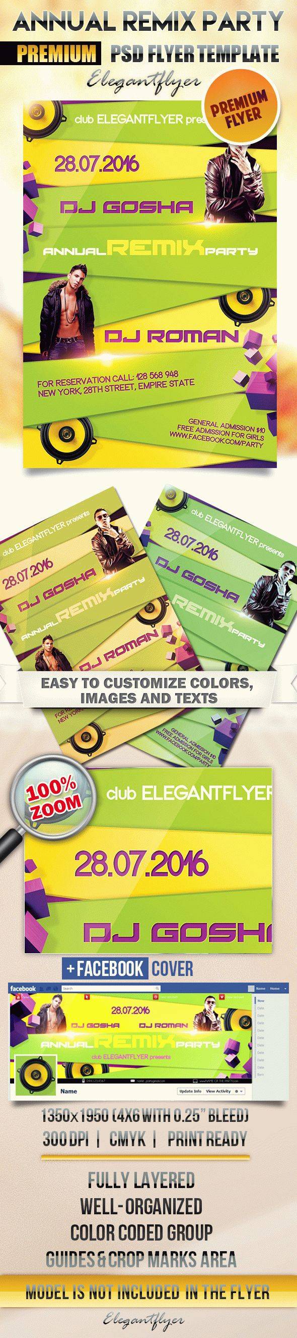 年度混音派对 - 传单PSD模板+ Facebook封面