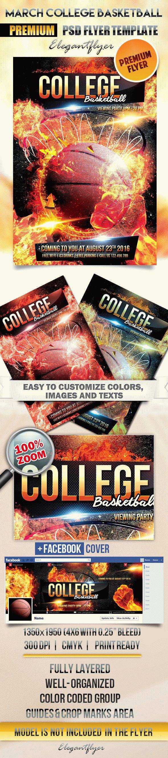 3月大学篮球2 - 传单PSD模板+ Facebook封面