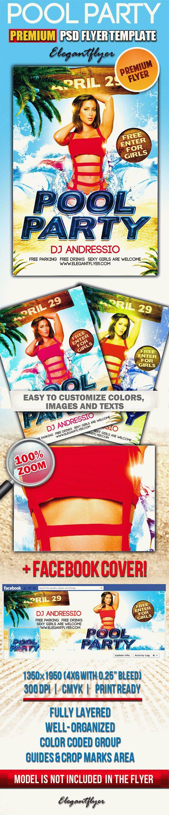 泳池派对 - PSD传单模板+脸谱封面