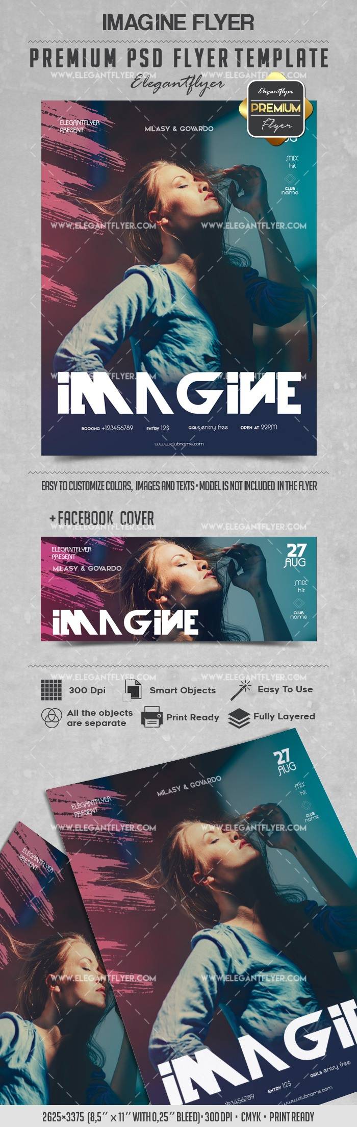 想象一下 - 传单PSD模板+ Facebook封面