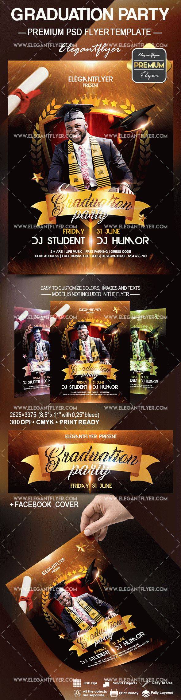 毕业派对 - 传单PSD模板+ Facebook封面
