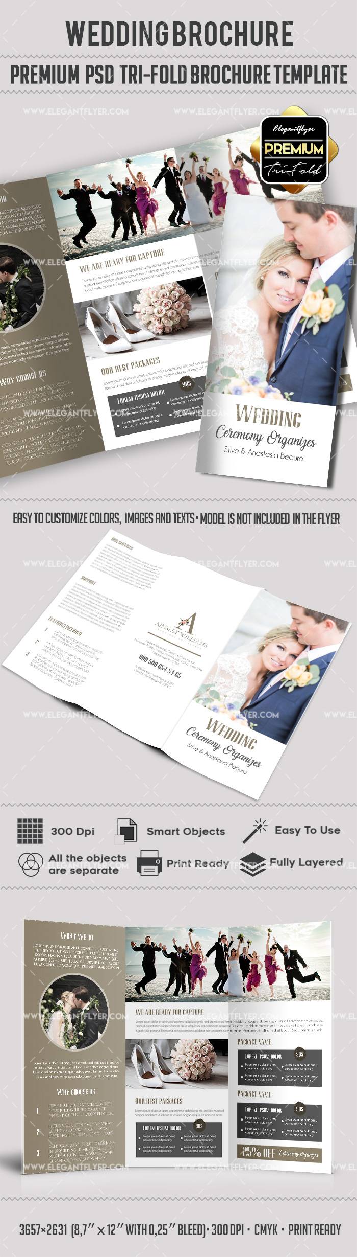 婚礼 - 优质三栏式PSD宣传册模板