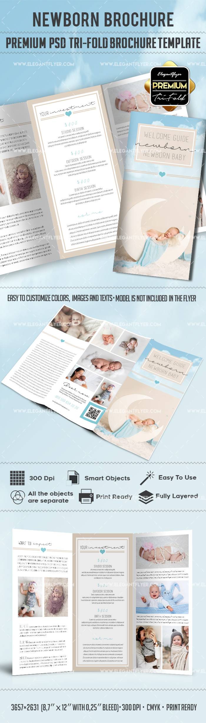 新生儿 - 优质三栏式PSD宣传册模板
