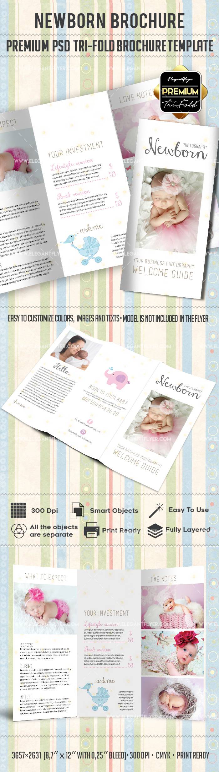 新生儿 - 优质三栏式PSD宣传册模板