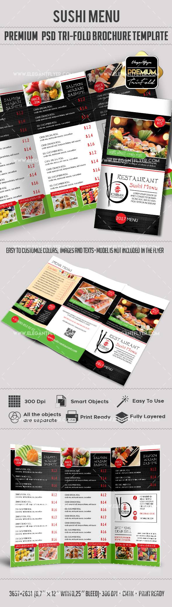 寿司 - 优质三栏式PSD传单食物菜单