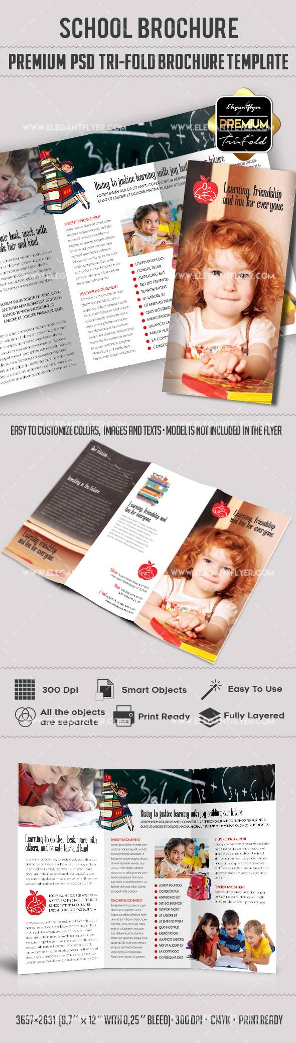 学校 - 优质三栏式PSD宣传册模板