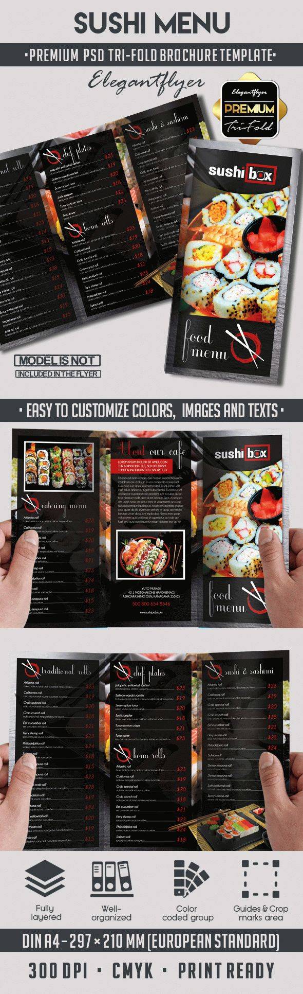 寿司菜单 - 溢价三折PSD传单