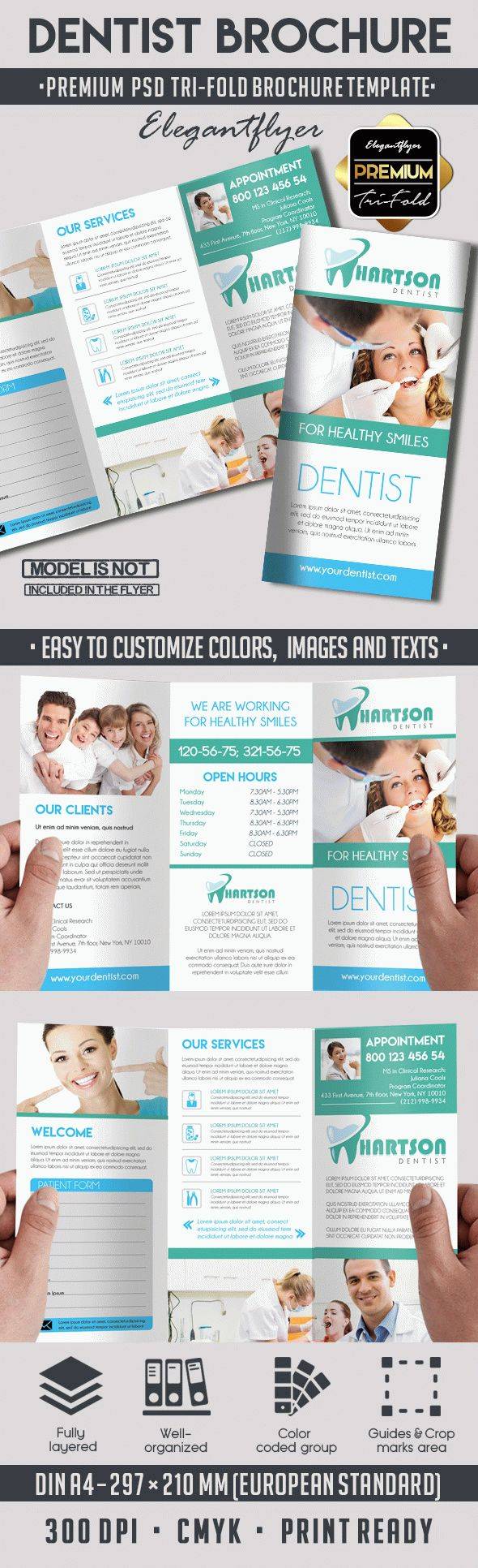 牙医 - 优质三栏式PSD宣传册模板