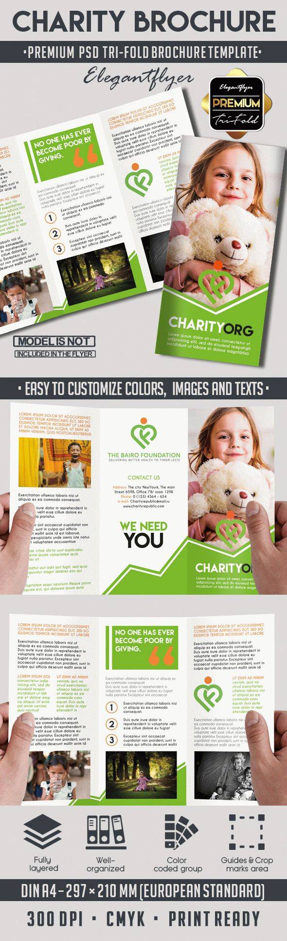 慈善 - 优质三栏式PSD宣传册模板