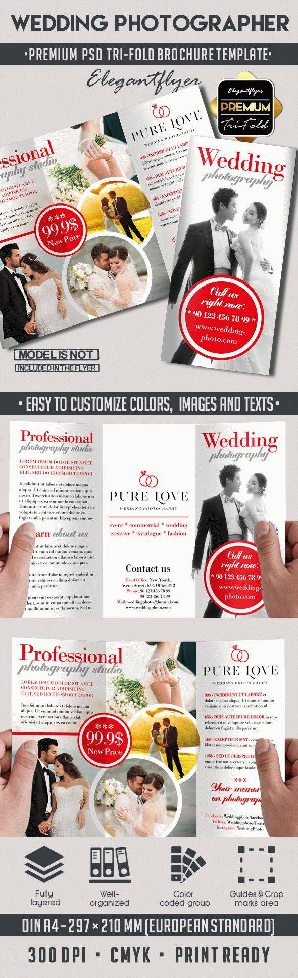 婚礼摄影 - 溢价三折PSD传单