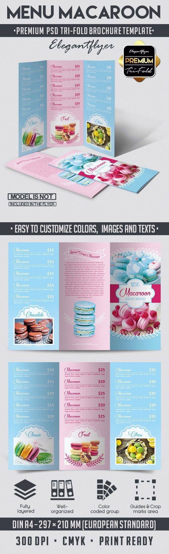 菜单蛋白杏仁饼干 - 三栏式小册子PSD模板