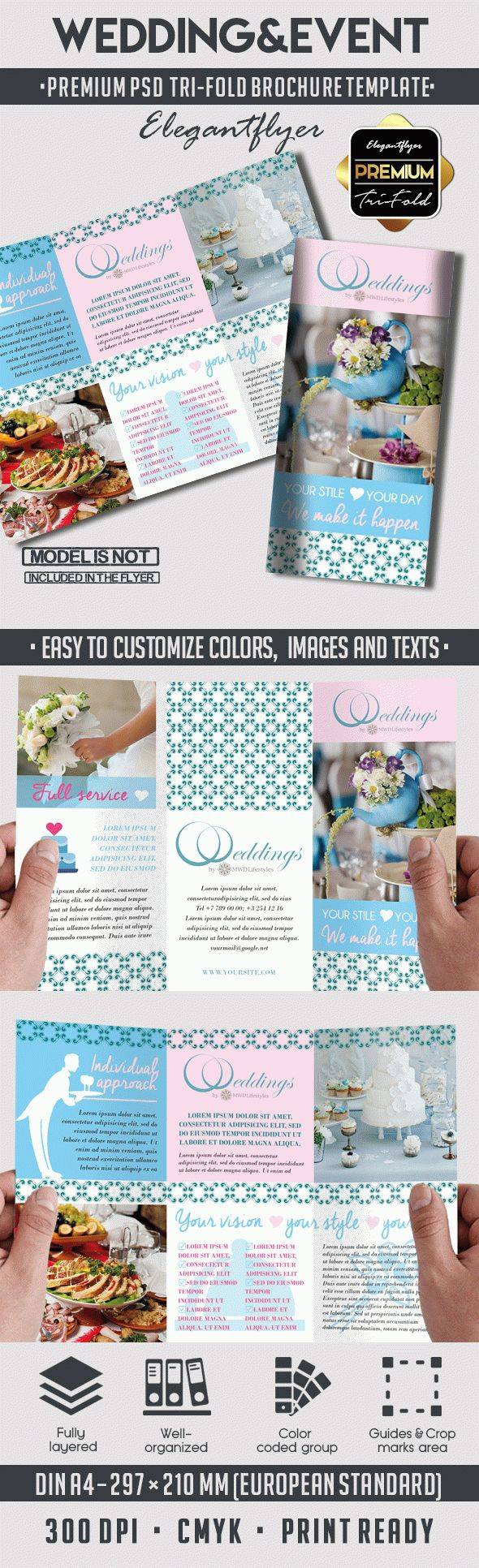 婚礼&事件 - 优质三栏PSD小册子模板