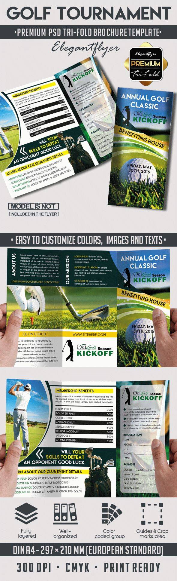 高尔夫邀请赛 - 优质三栏式PSD宣传册模板