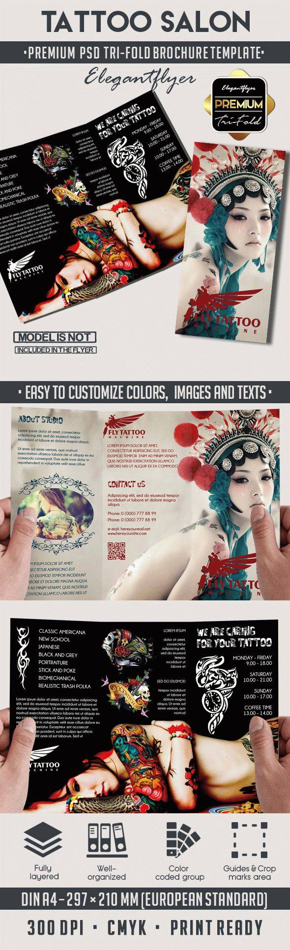 纹身沙龙溢价三折PSD传单