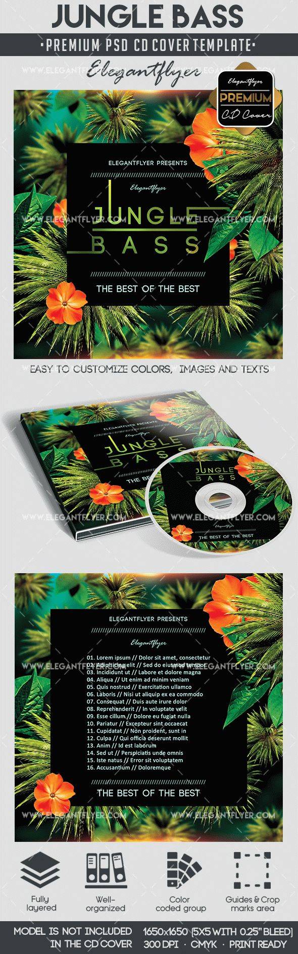 丛林低音 - 优质CD和DVD封面PSD模板
