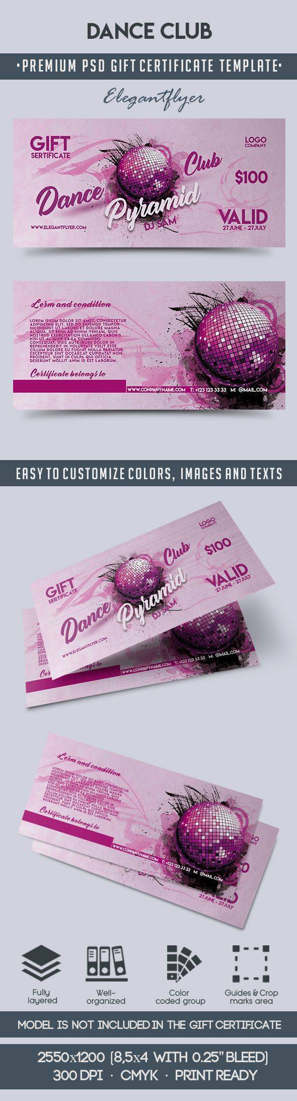舞蹈俱乐部 - 优质礼品证书PSD模板
