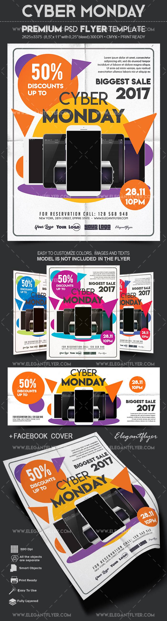 网络星期一销售 - 传单PSD模板+ Facebook封面