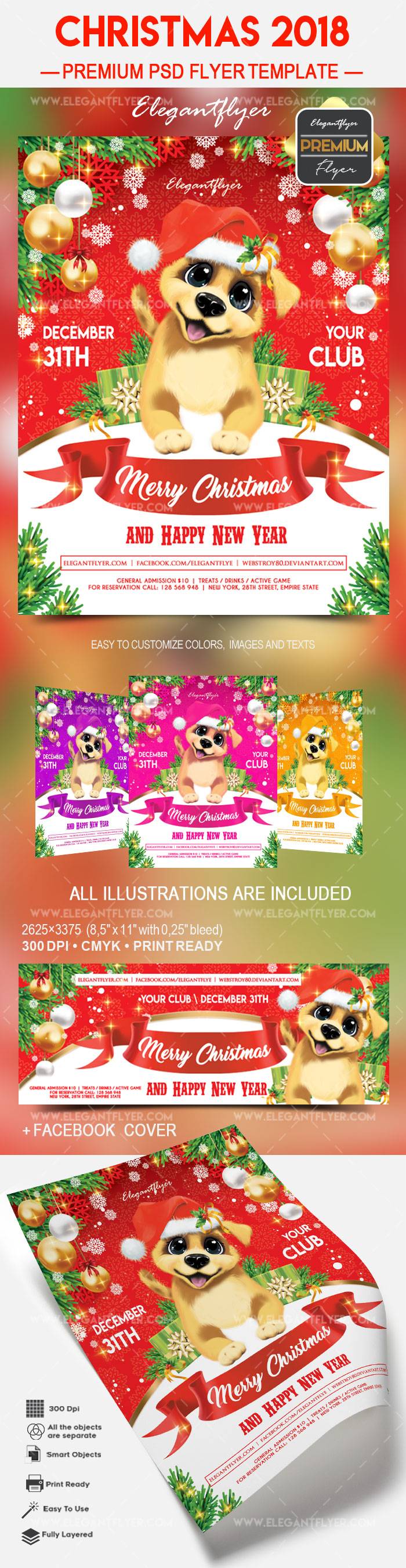圣诞节2018年 - 传单PSD模板+ Facebook封面