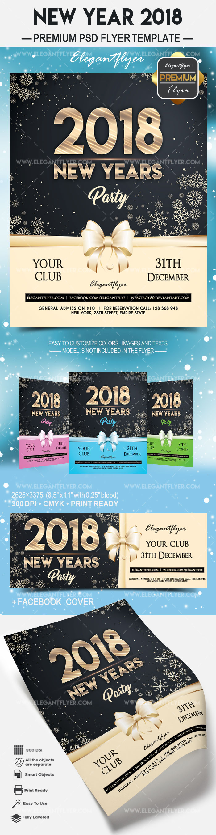 新年2018年 - 传单PSD模板+ Facebook封面
