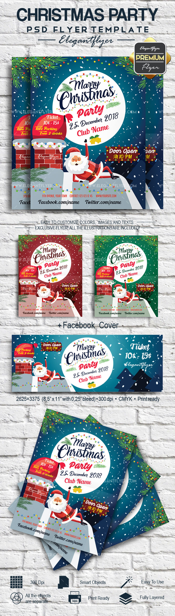 圣诞晚会 - 传单PSD模板+ Facebook的封面