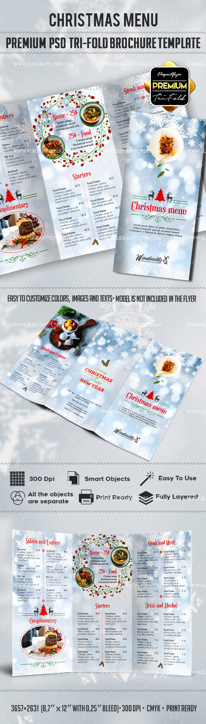 圣诞节菜单 - 优质三部合成的PSD传单模板