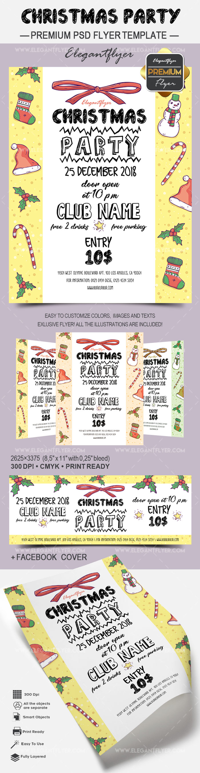 圣诞晚会 - 传单PSD模板+ Facebook封面
