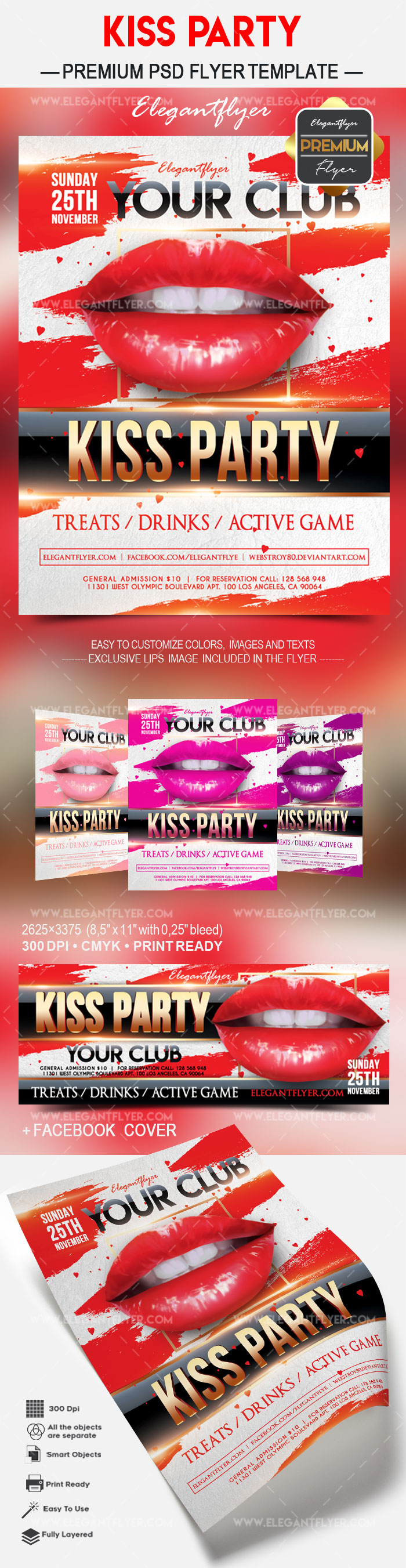 亲吻派对 - 传单PSD模板+ Facebook封面