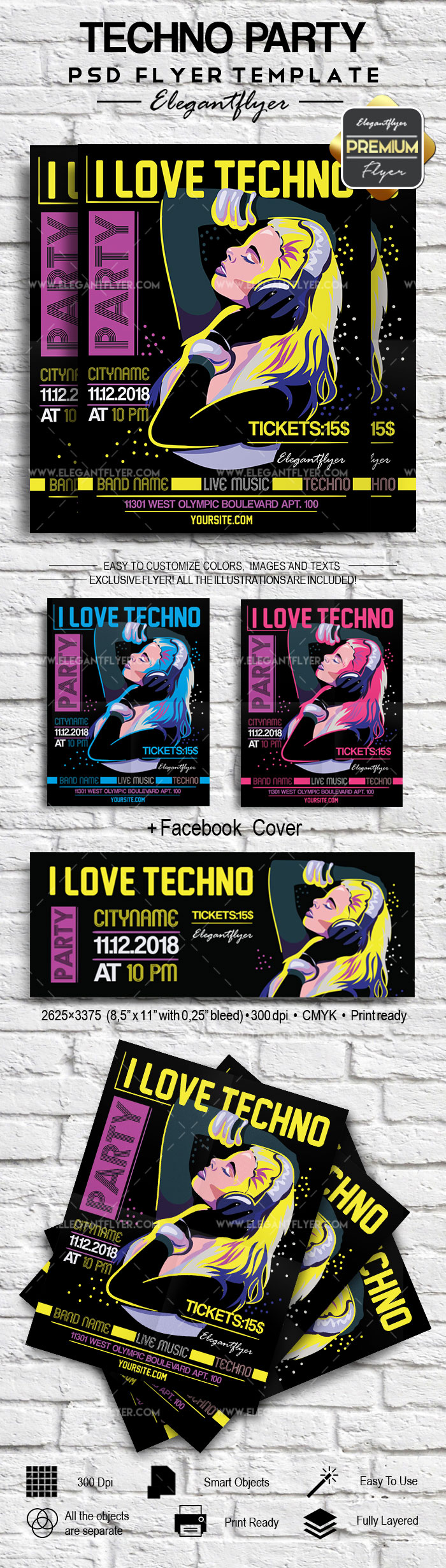 技术派对 - 传单PSD模板+ Facebook的封面