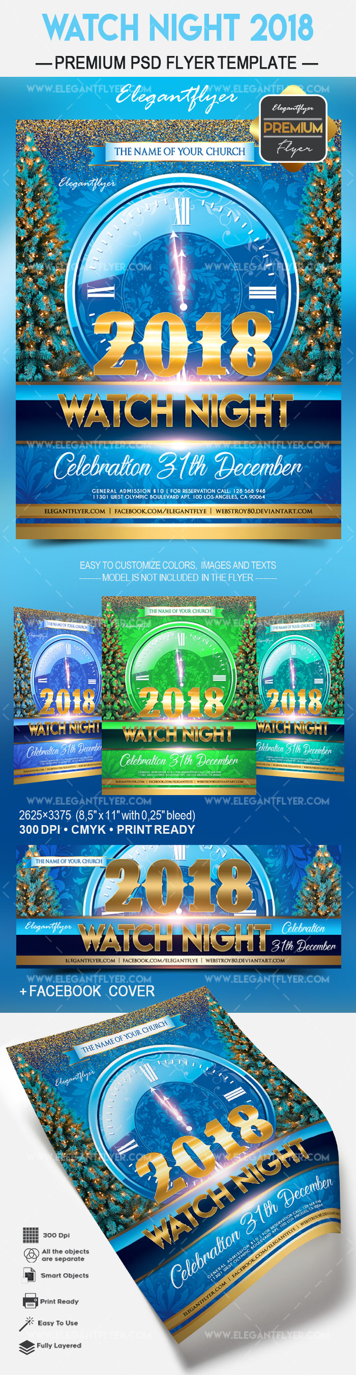 手表之夜2018年 - 传单PSD模板+ Facebook封面