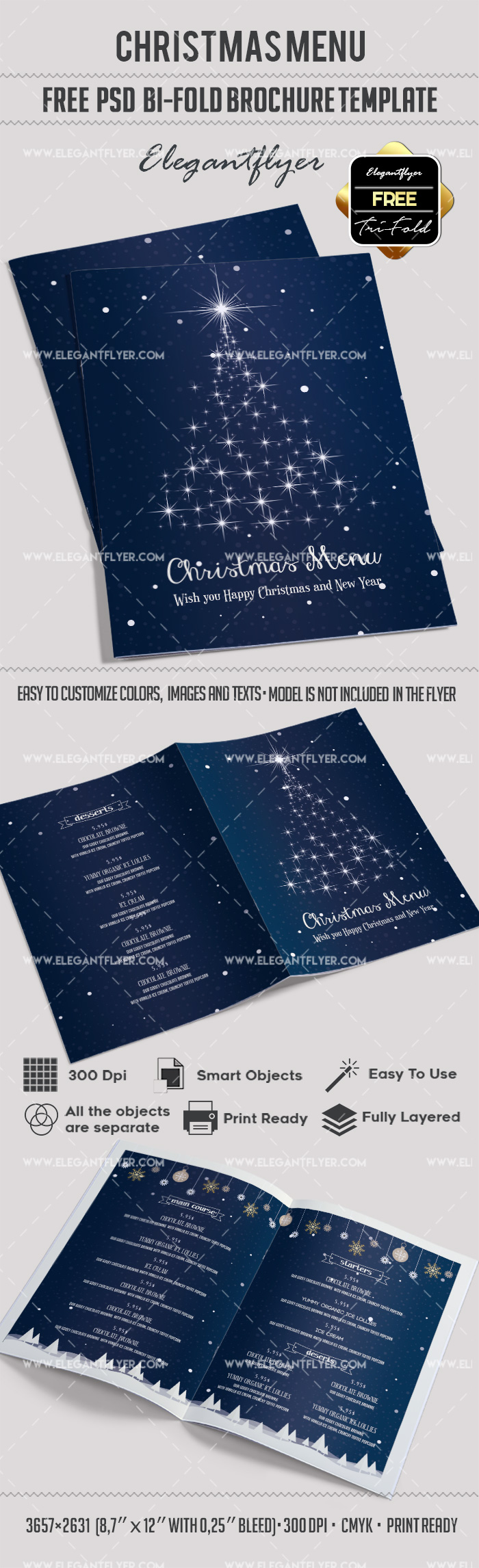免费的圣诞菜单 - 双折PSD传单