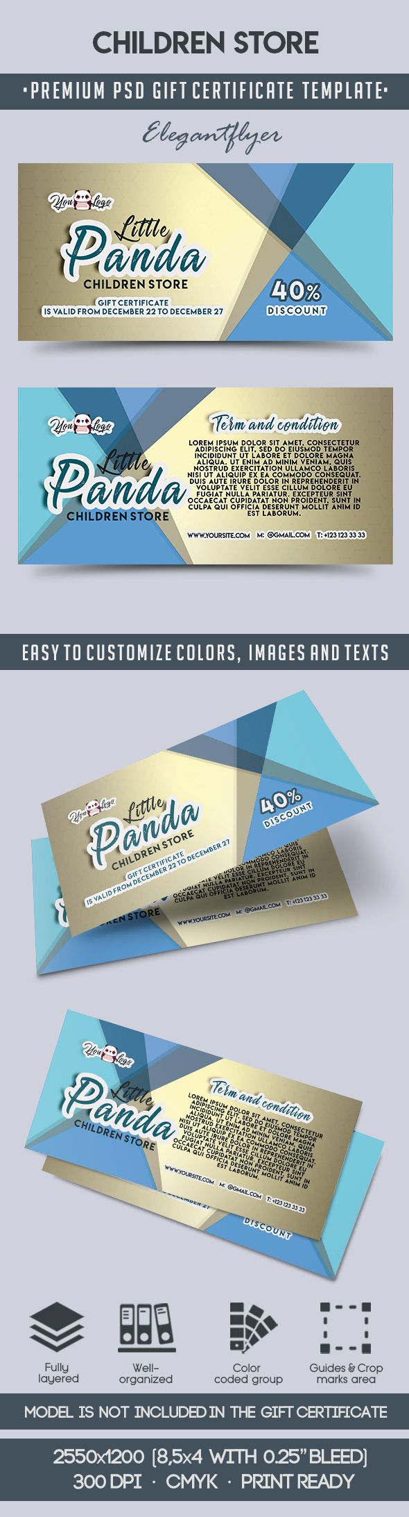 儿童商店 - 优质礼品证书PSD模板