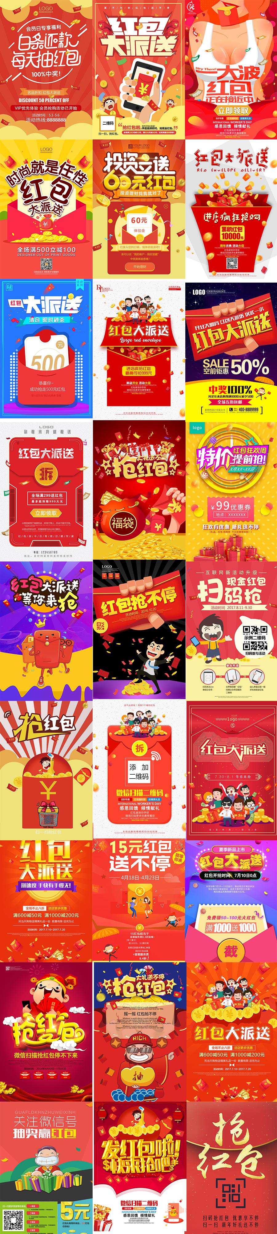 27款电商淘宝抢红包领红包送红包活动海报模板PSD源文件打包下载