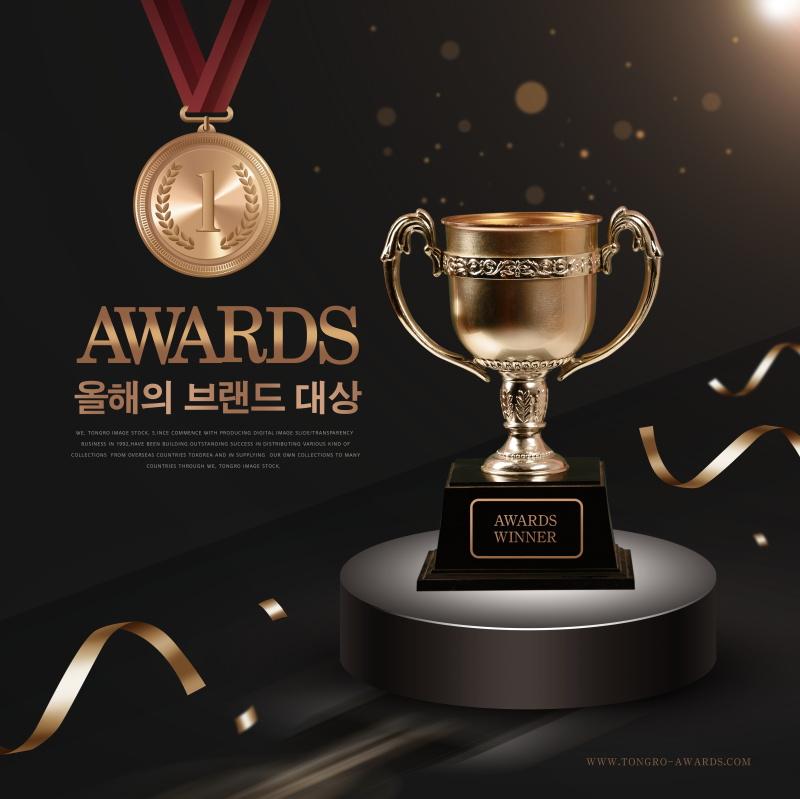 20款奖杯奖牌黑金年会表彰年度荣誉颁牌排名海报展台背景PSD设计素材