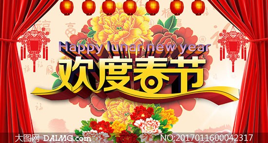 欢度春节喜庆海报设计PSD素材下载,2017,春节,新春,欢度春节,新年,牡丹花,花朵,花朵,帷幕,幕布,红灯笼,春节活动海报,节日素材,海报设计,广告设计模板 欢度春节喜庆海报PSD素材免费下载