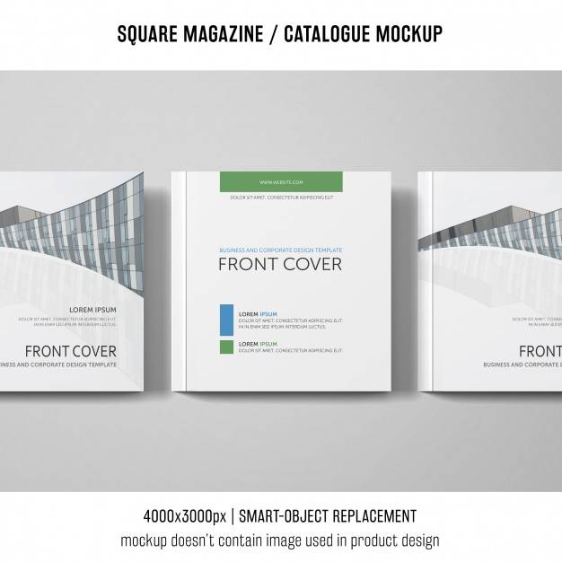 方形杂志或目录样机与不同的对象