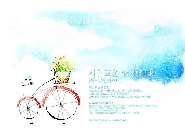 卡通单车风景画