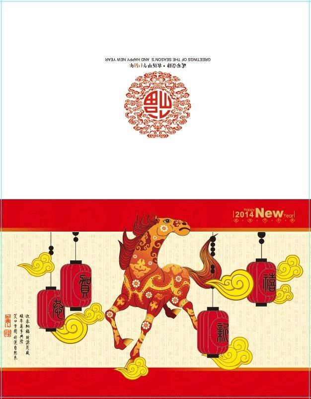 2014年新年 马年剪纸贺卡礼品卡 春节喜庆元素