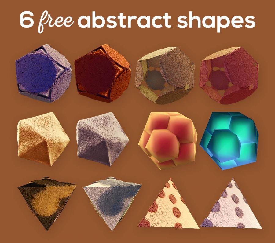 6个自由抽象的3D形状PNG图片素材 6 Free Abstract 3D Shapes 2