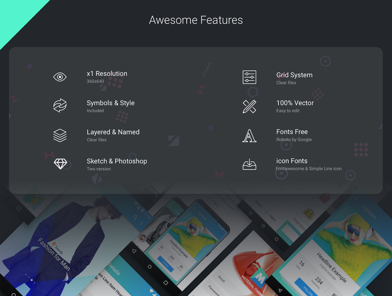 材料模板UX / UI工具包Android Ready,材质模板UX / UI工具包
