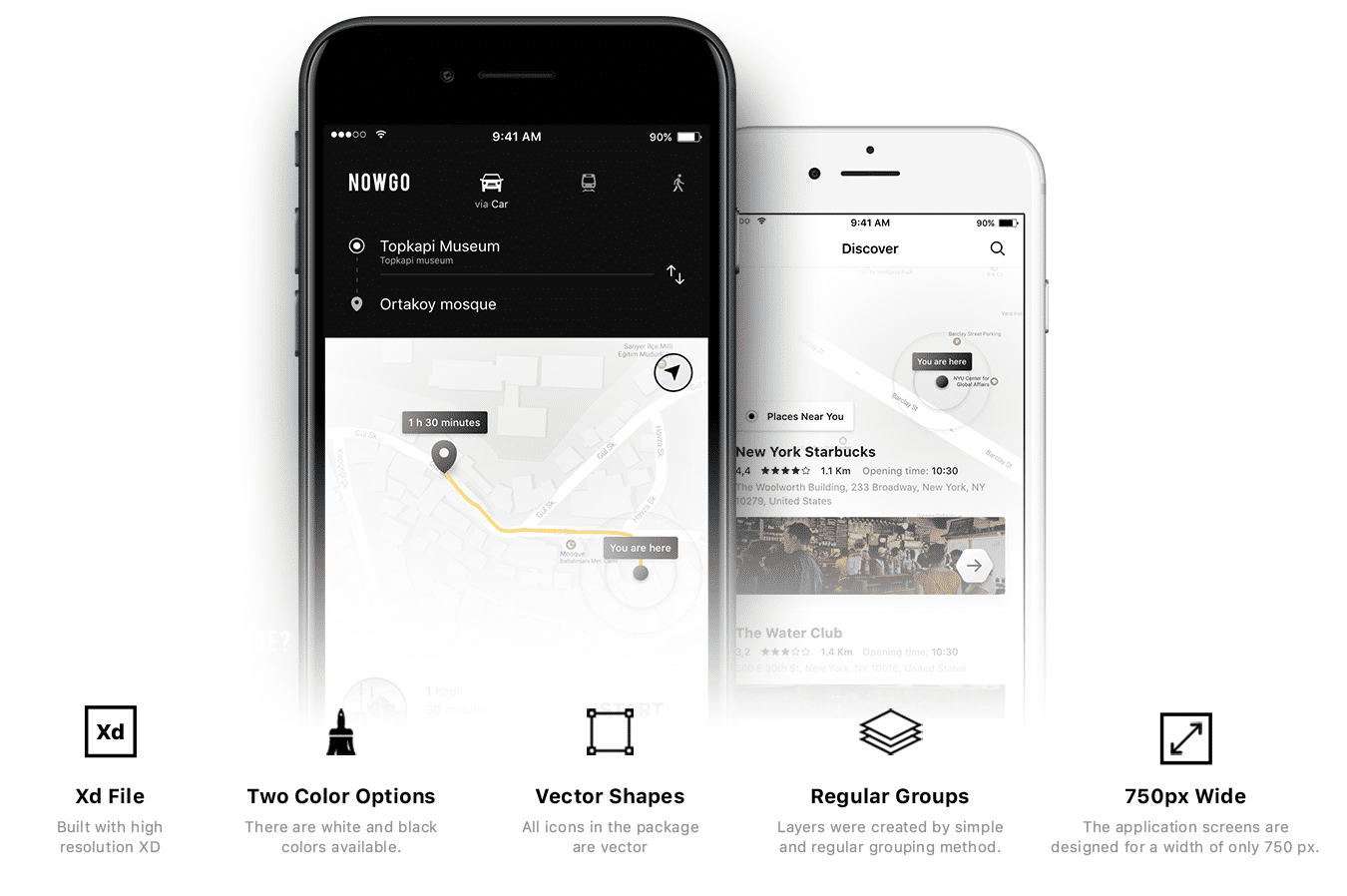 功能强大的旅行设计软件包,采用Adobe XD,Nowgo UI Kit设计