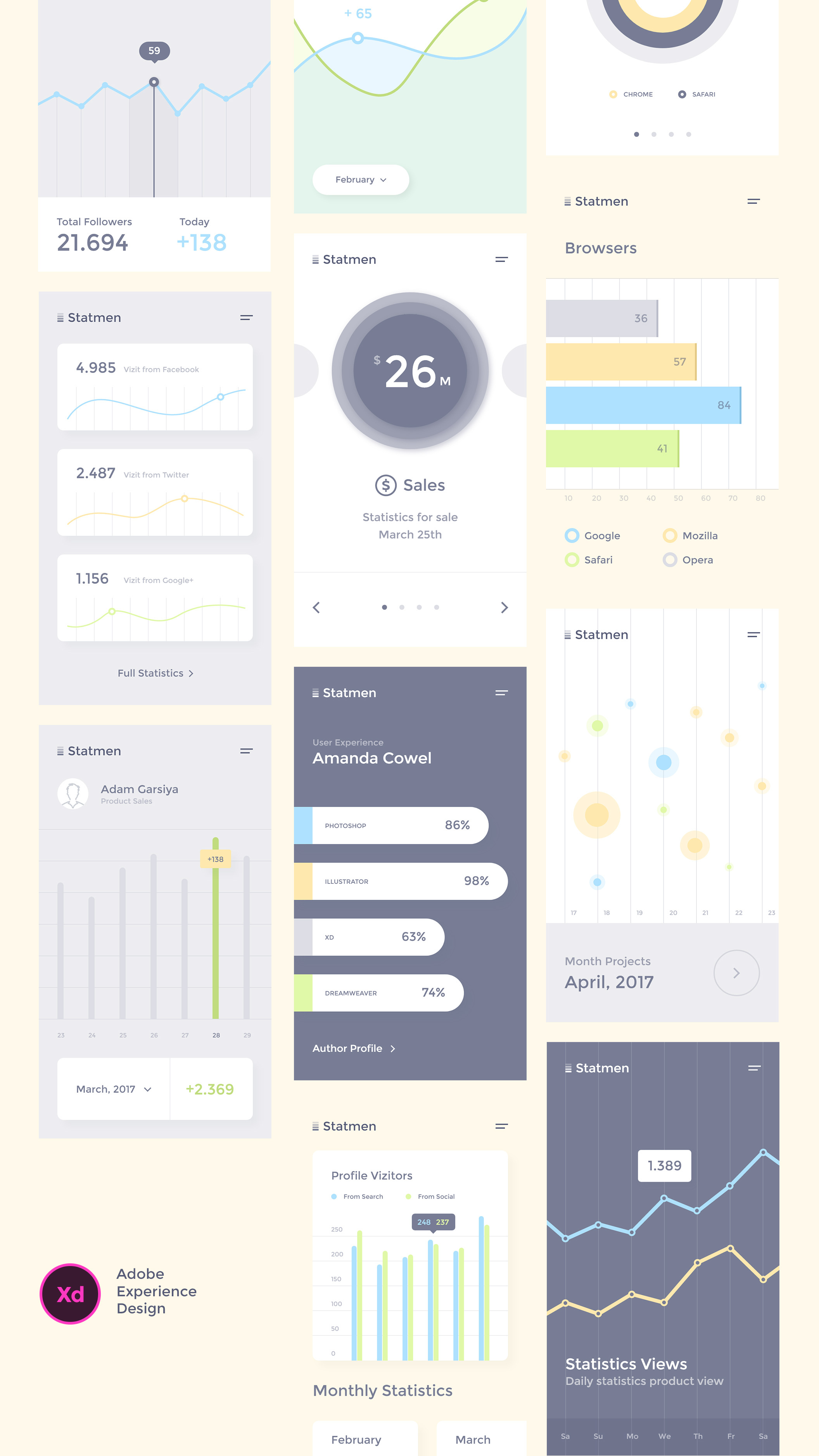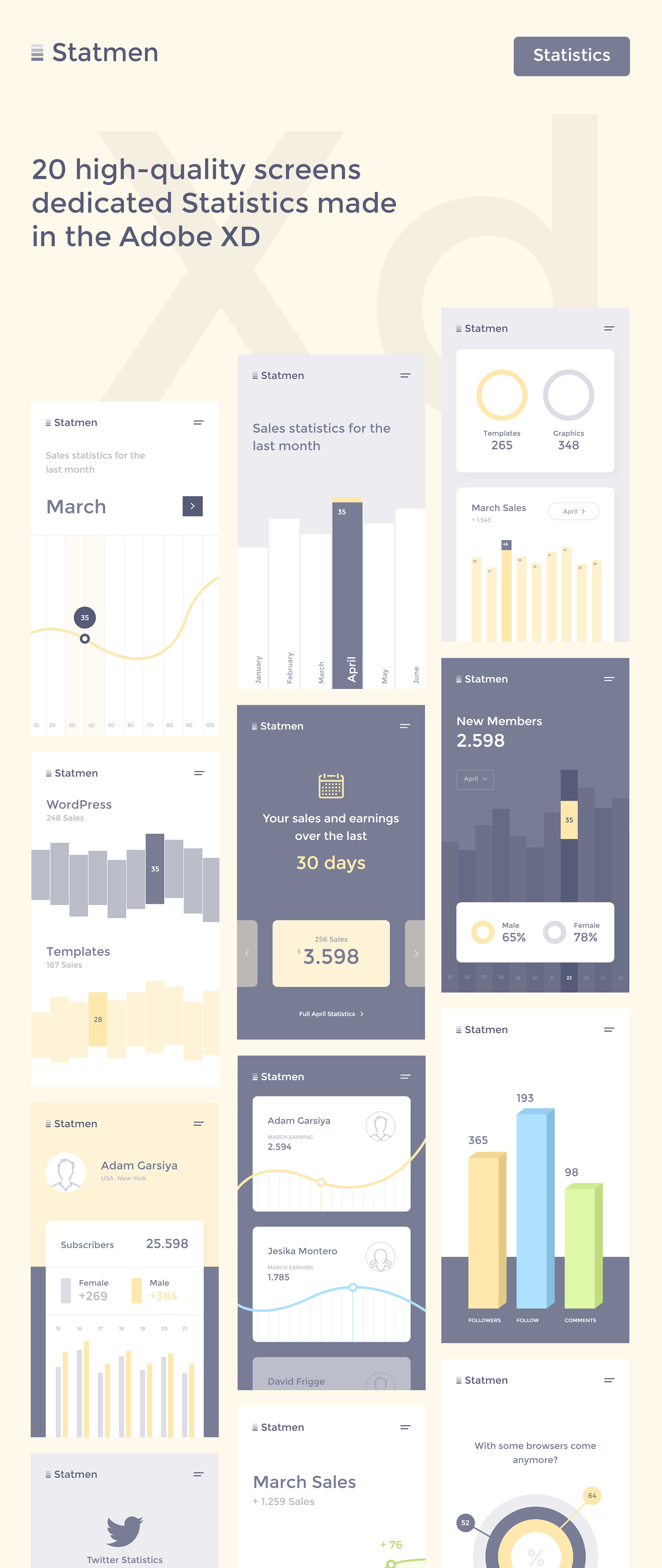 20个iOS屏幕专用于Adobe XD统计,Statmen XD统计