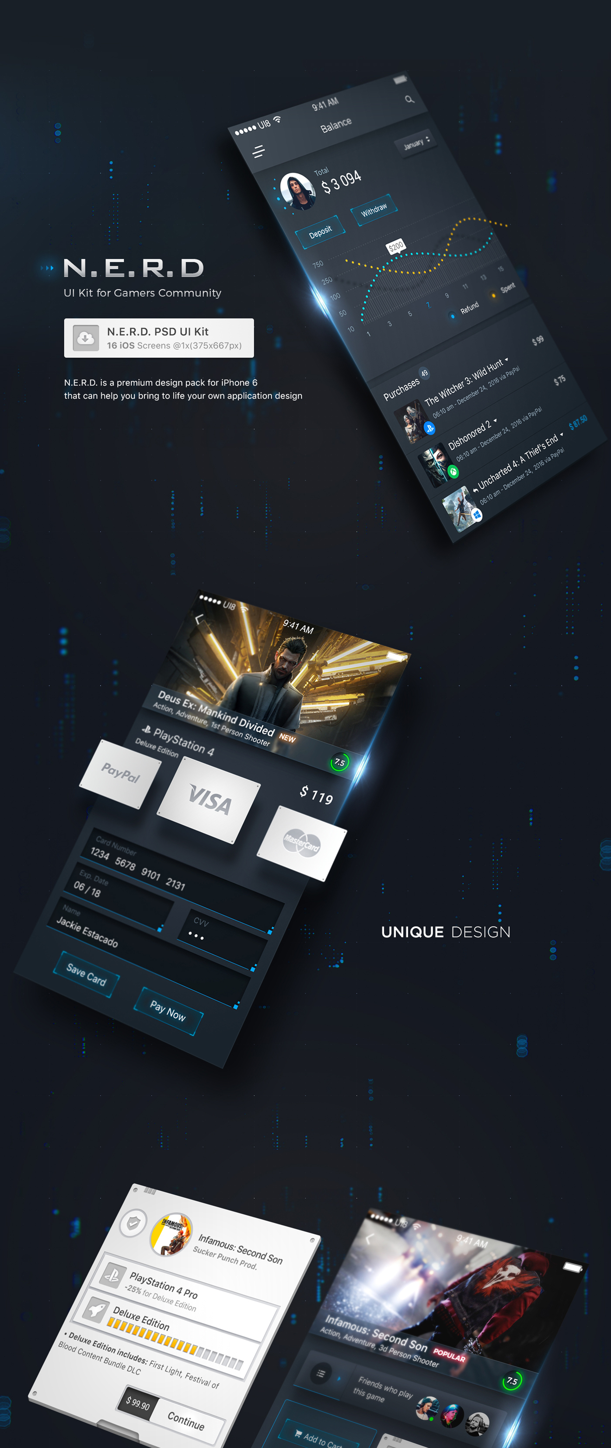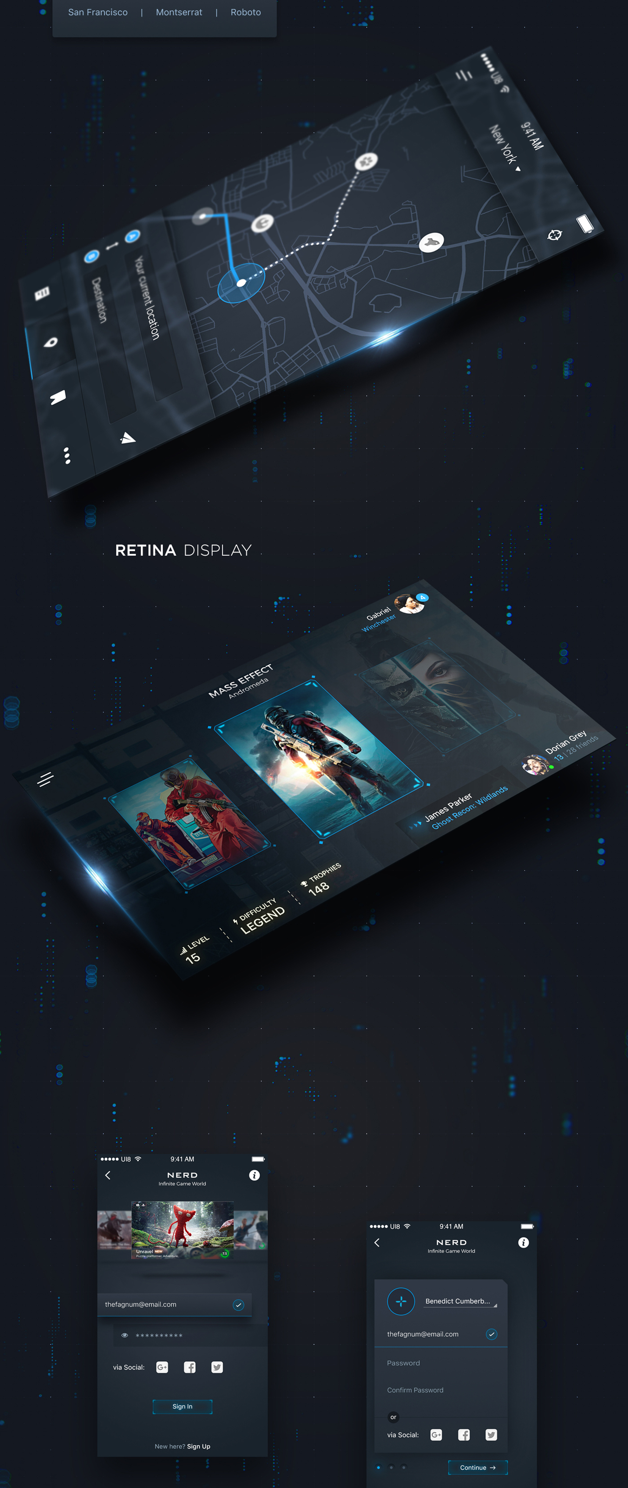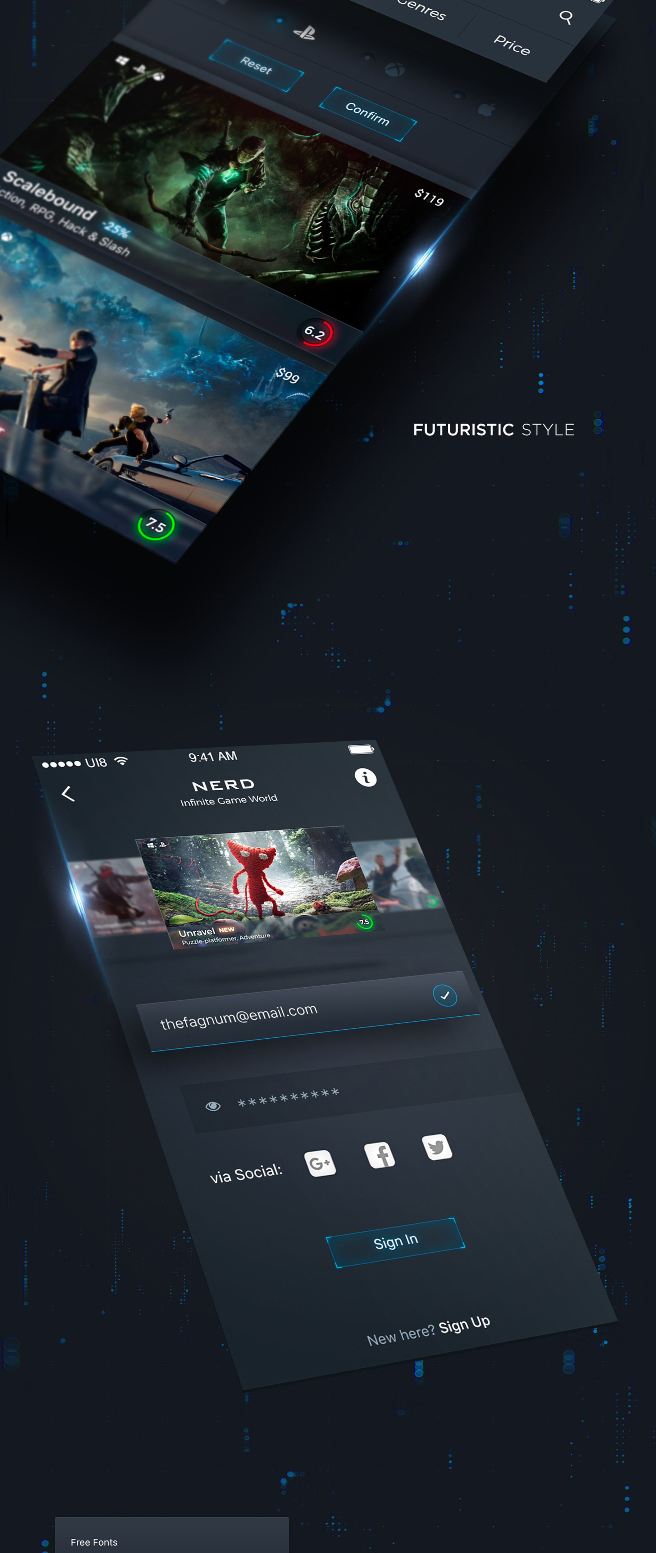 游戏玩家iOS,NERD UI Kit的社区未来派设计
