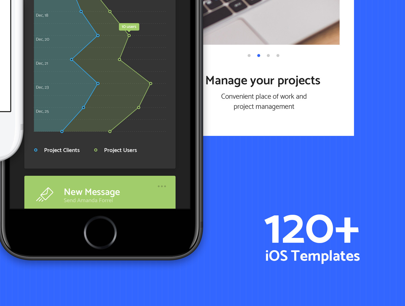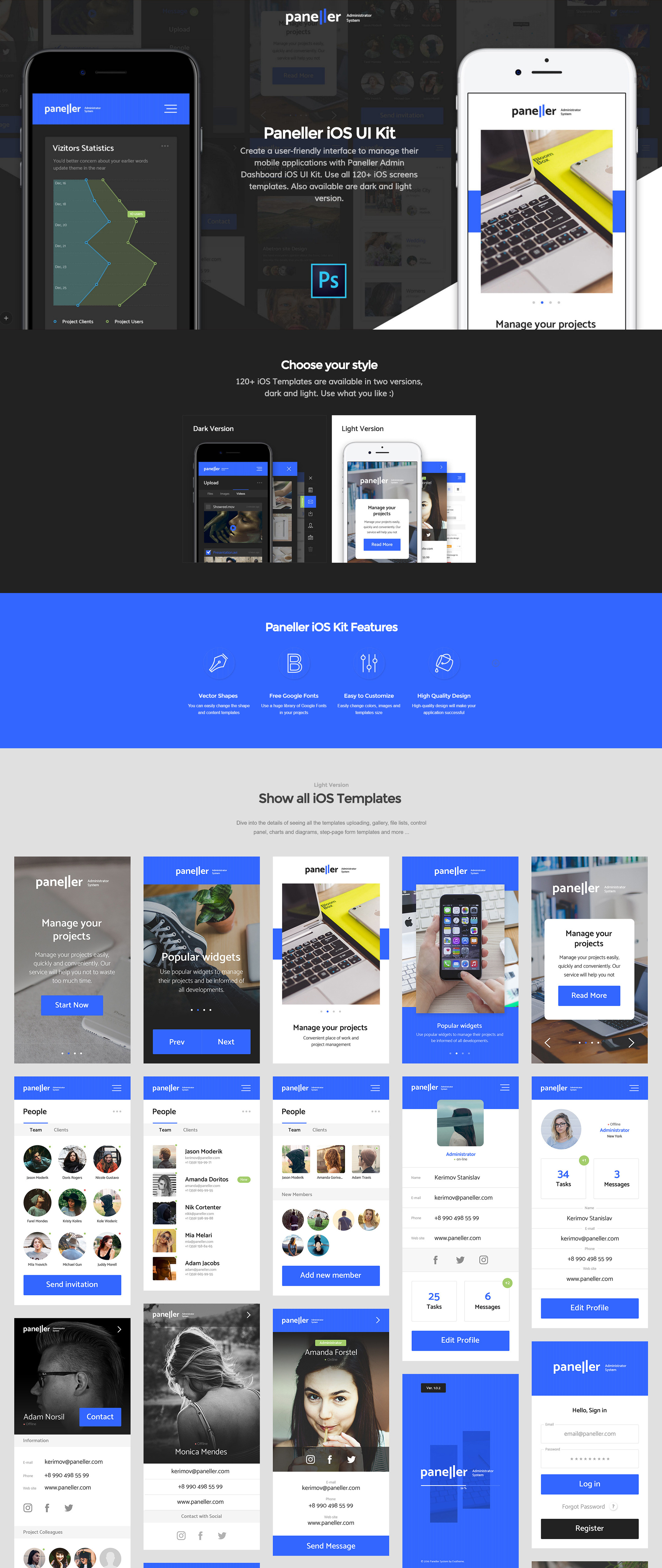 使用Paneller Admin Dashboard iOS UI Kit创建一个用户友好的界面来管理移动应用程序。使用所有120 + iOS屏幕模板,在黑暗和光明版本。在Photoshop中设计。