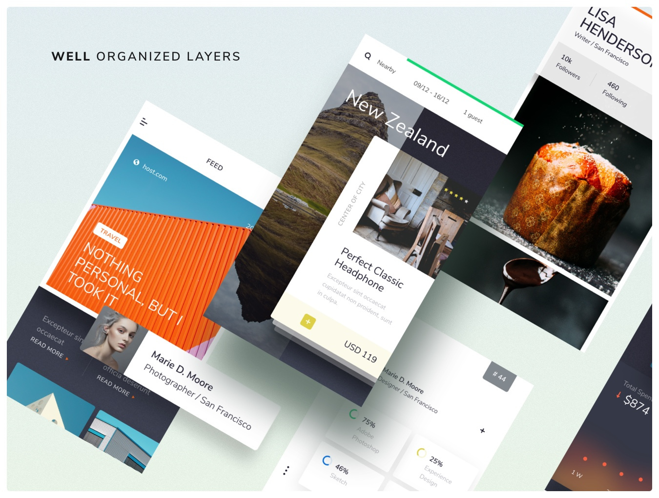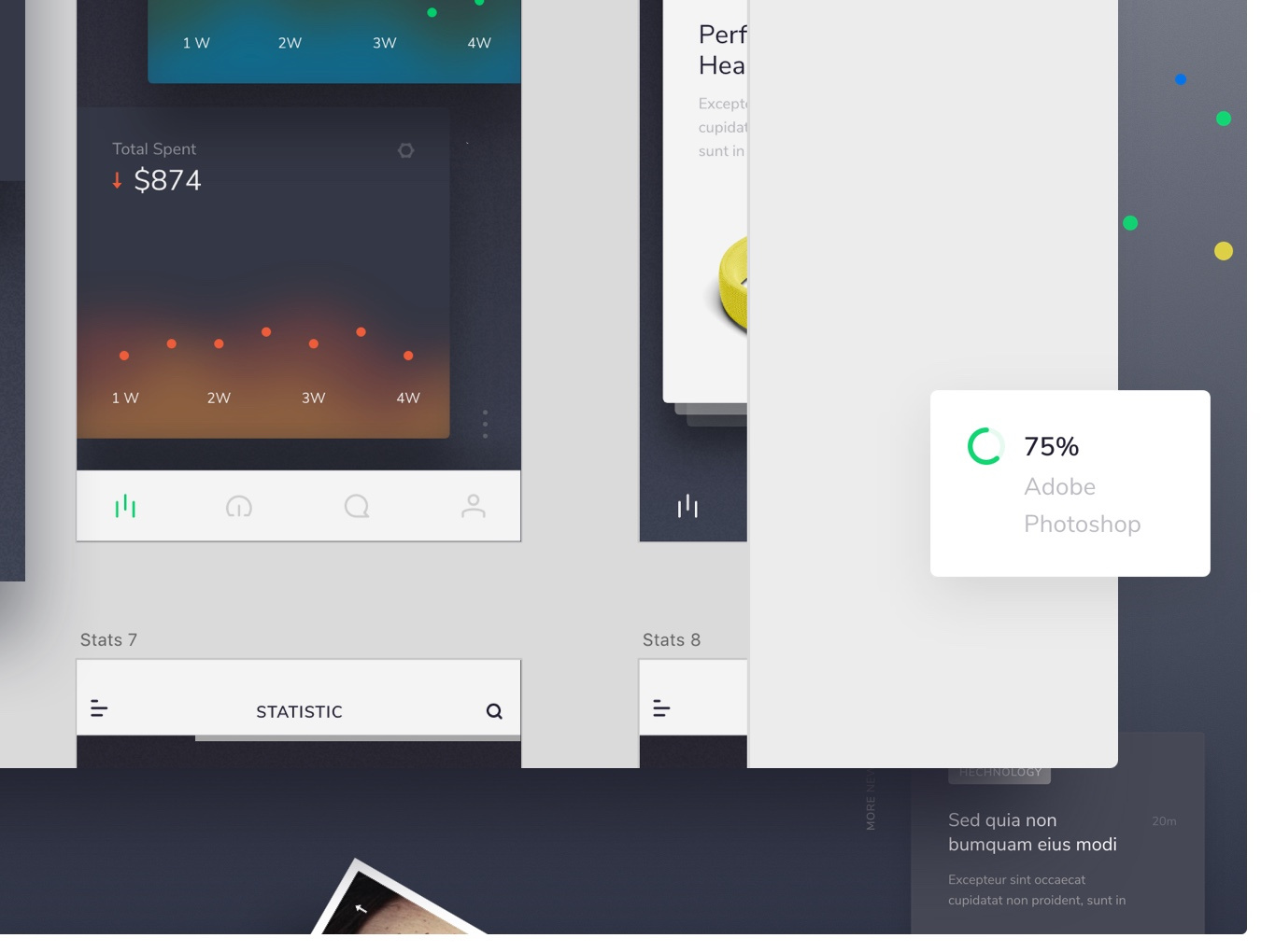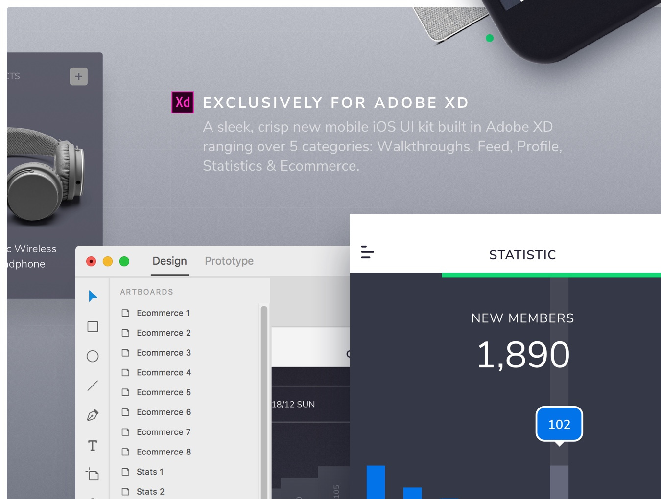 介绍XD。 Adobe XD内置的时尚,清新的基于移动iOS的UI工具包。 XD包括5个类别的39个手机屏幕;演练,饲料,配置文件,统计和电子商务。