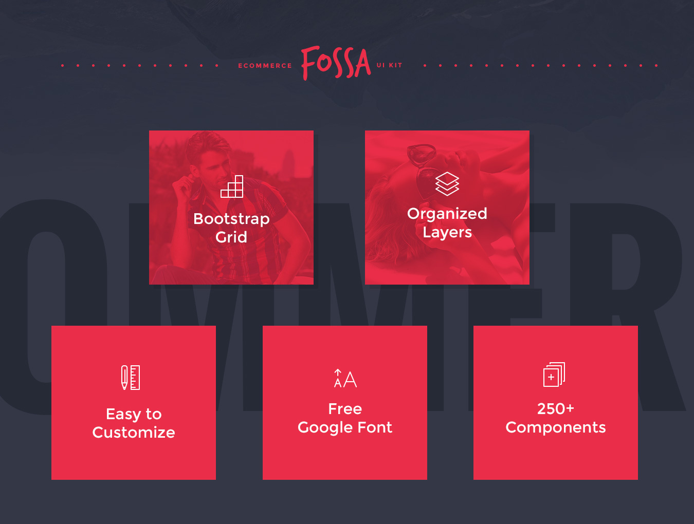 用Fossa电子商务用户界面工具包创建一个独特而时尚的电子商务网站。窝包括12个页面样本和8个分类拥挤超过250个UI元素,这个工具包正是你需要制定你的下一个时尚的购物网站。窝是Photoshop中设计的Photoshop。