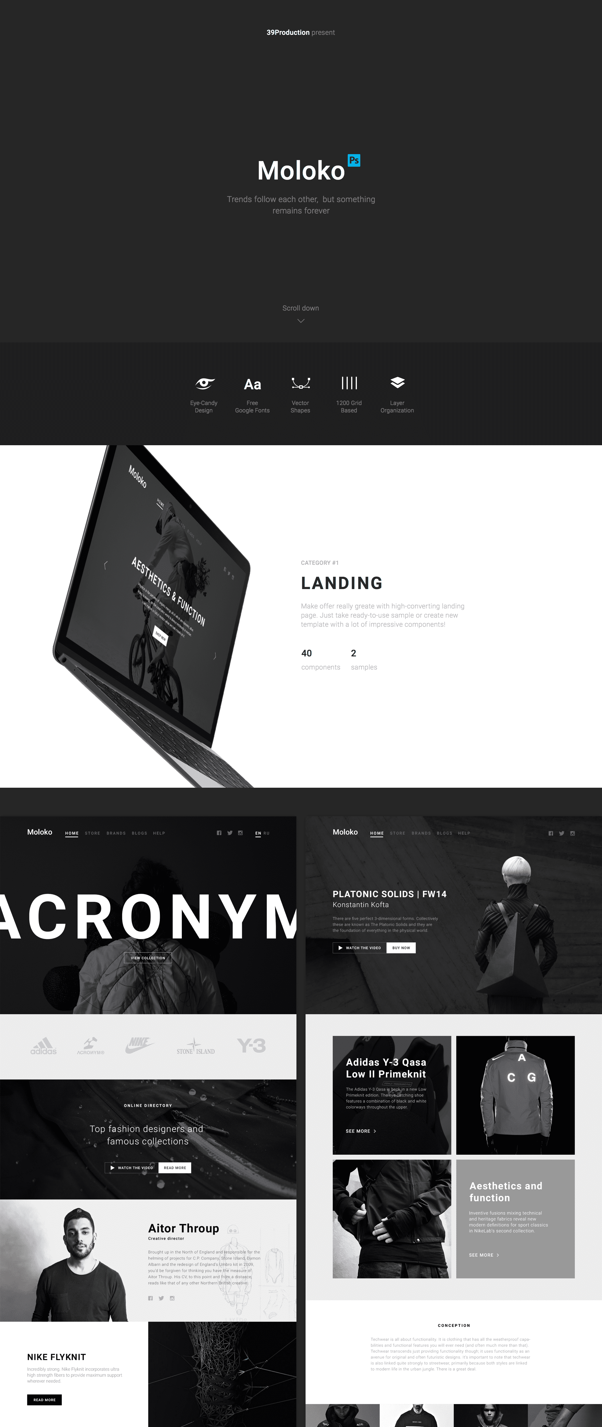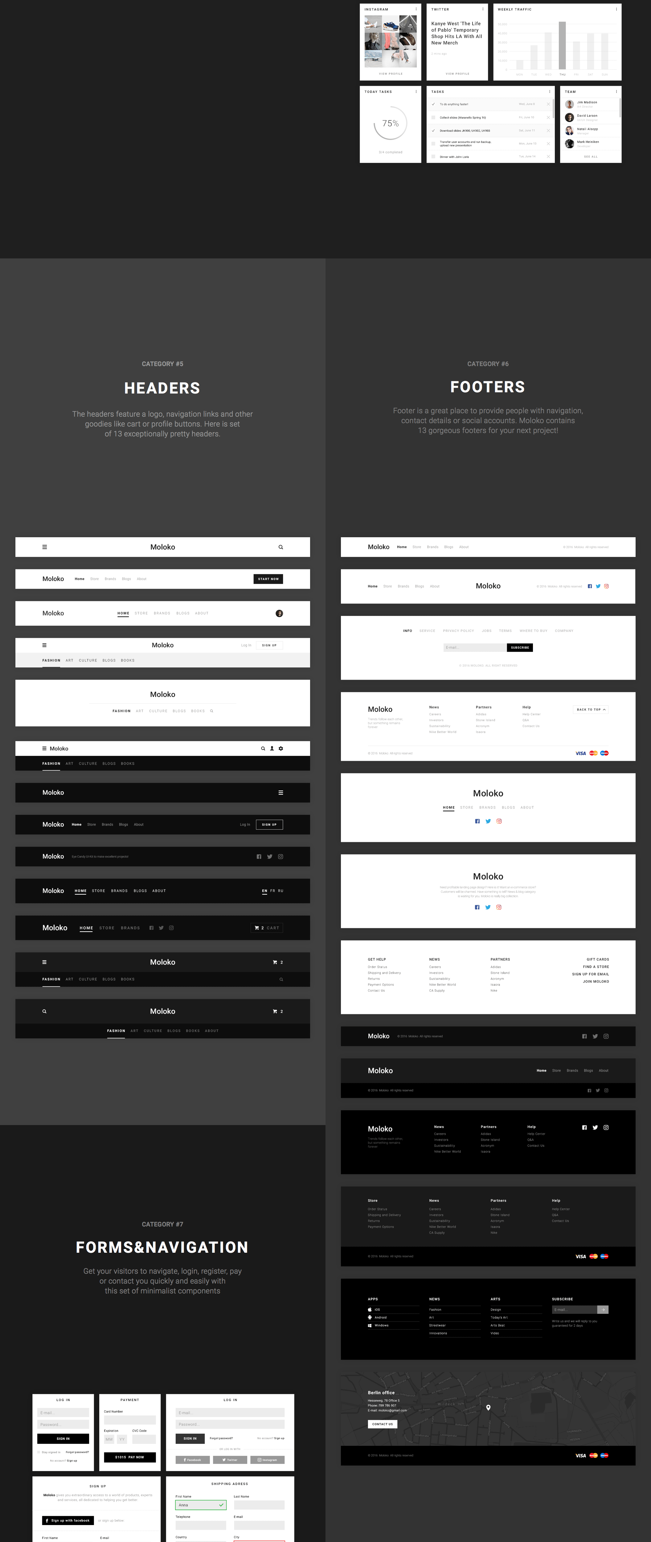 今天的界面与两个豌豆相似。我们转向基础,为您制作一个永恒和精致的UI工具包。莫洛科是一个基于Web的Photoshop文件集,具有美丽的简约和现代风格。包括7个深思熟虑的布局示例。当然,你可以自定义元素,但放心 - 无论哪种方式,结果将是优秀的。所有组件都基于模块化,精心命名,精心组织,符合设计师的需求。所以用Moloko制作你自己的设计真的是一个愉快的体验!趋势相互依存,但有些事情永远存在。