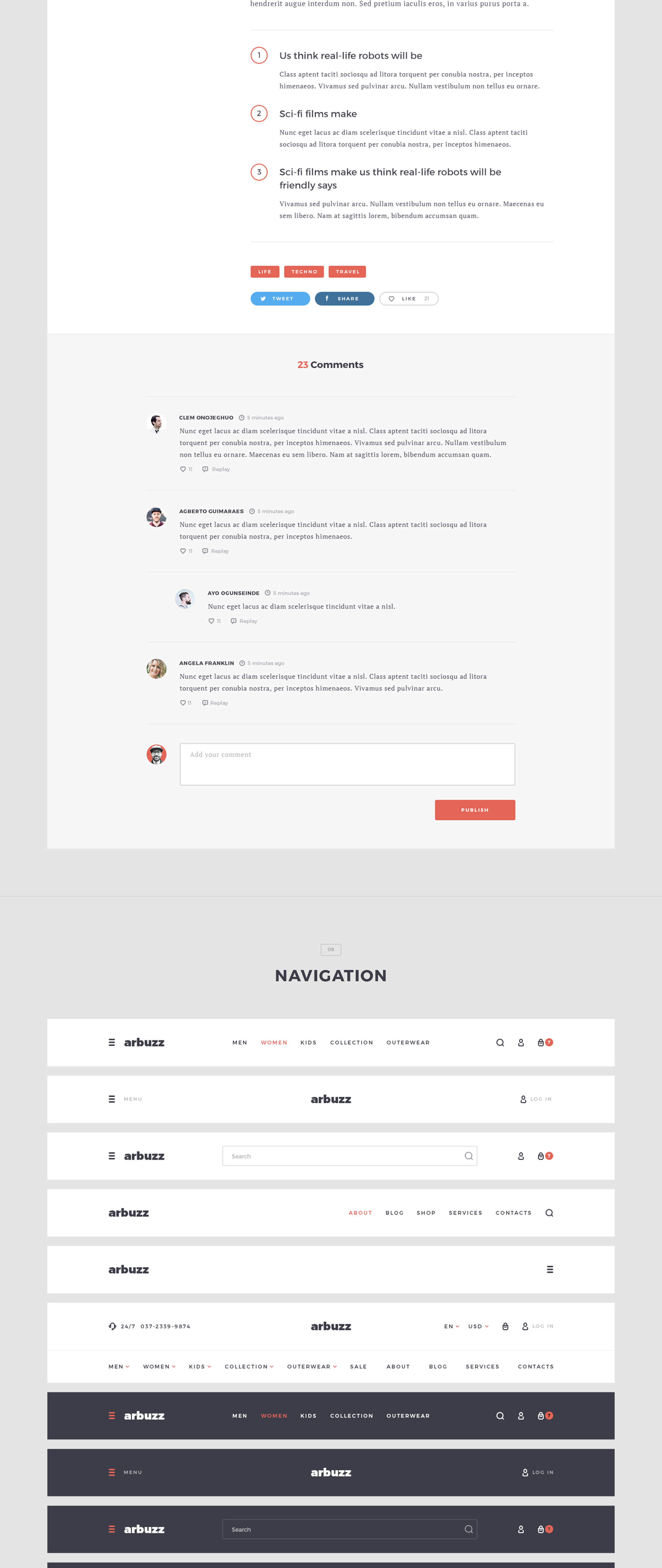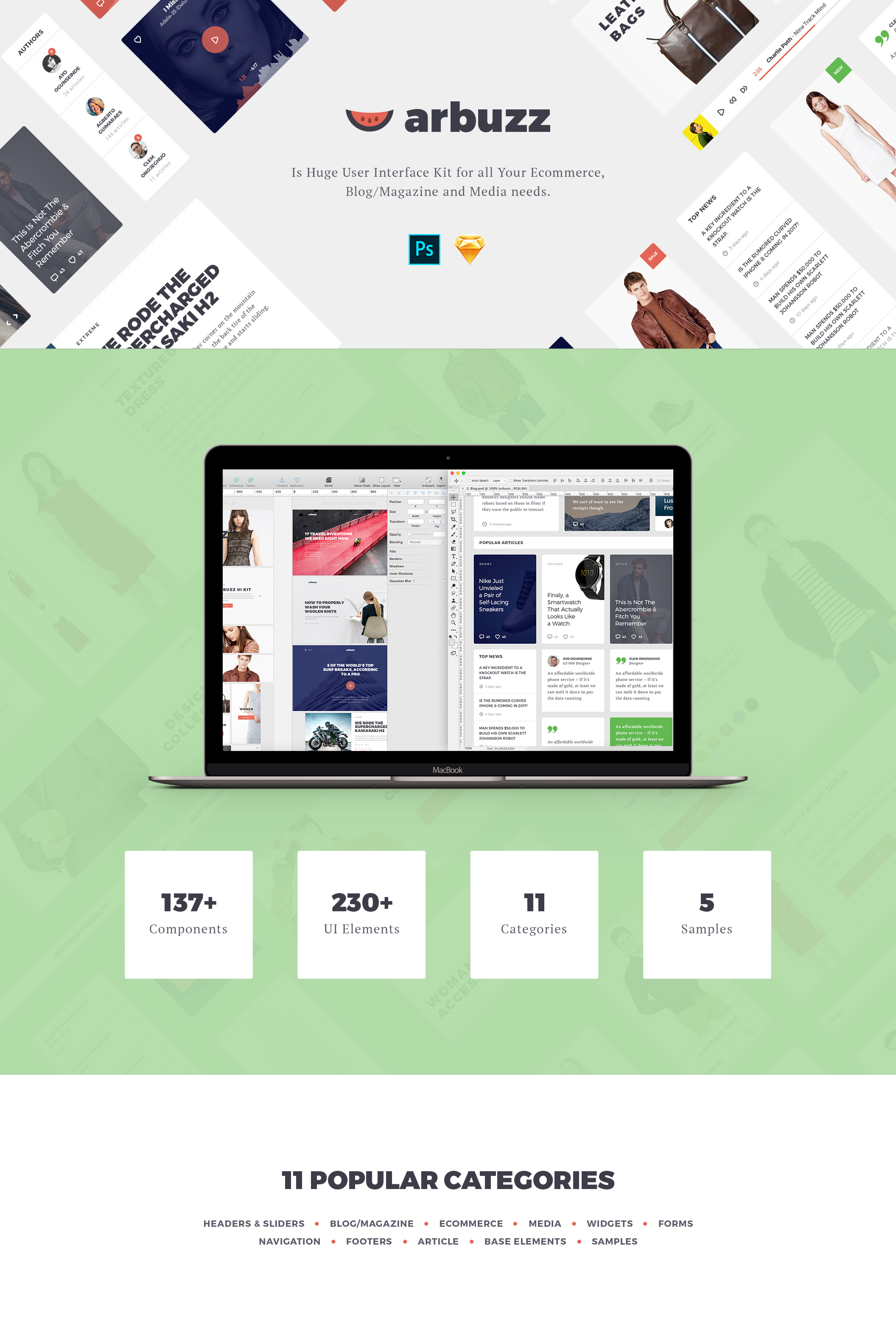 巨大的用户界面工具包为您的所有电子商务,博客/杂志和媒体的需求。 Arbuzz兼容Photoshop和Sketch,所以你可以根据自己的喜好进行设计!它包含简化您的网站或原型创建的设计元素。有了它,你可以轻松地创建一个在线商店,博客或杂志,媒体门户等等!你的想象力想什么?
