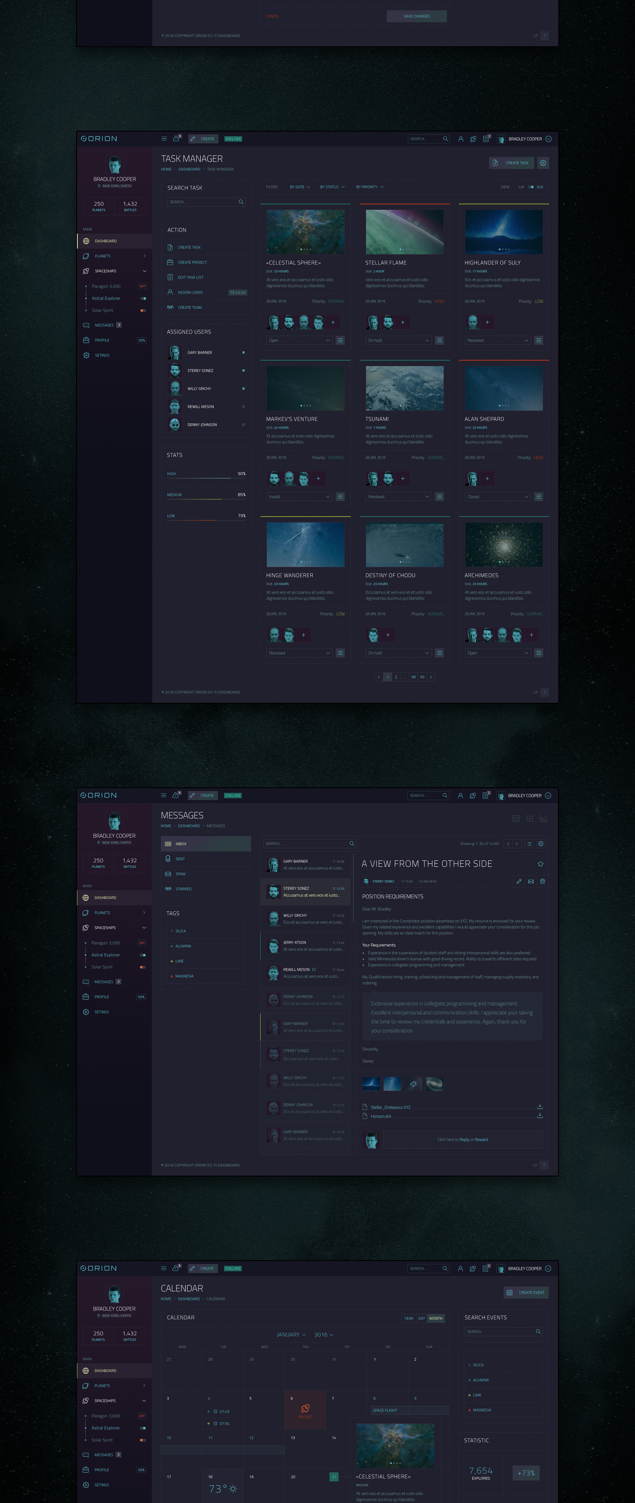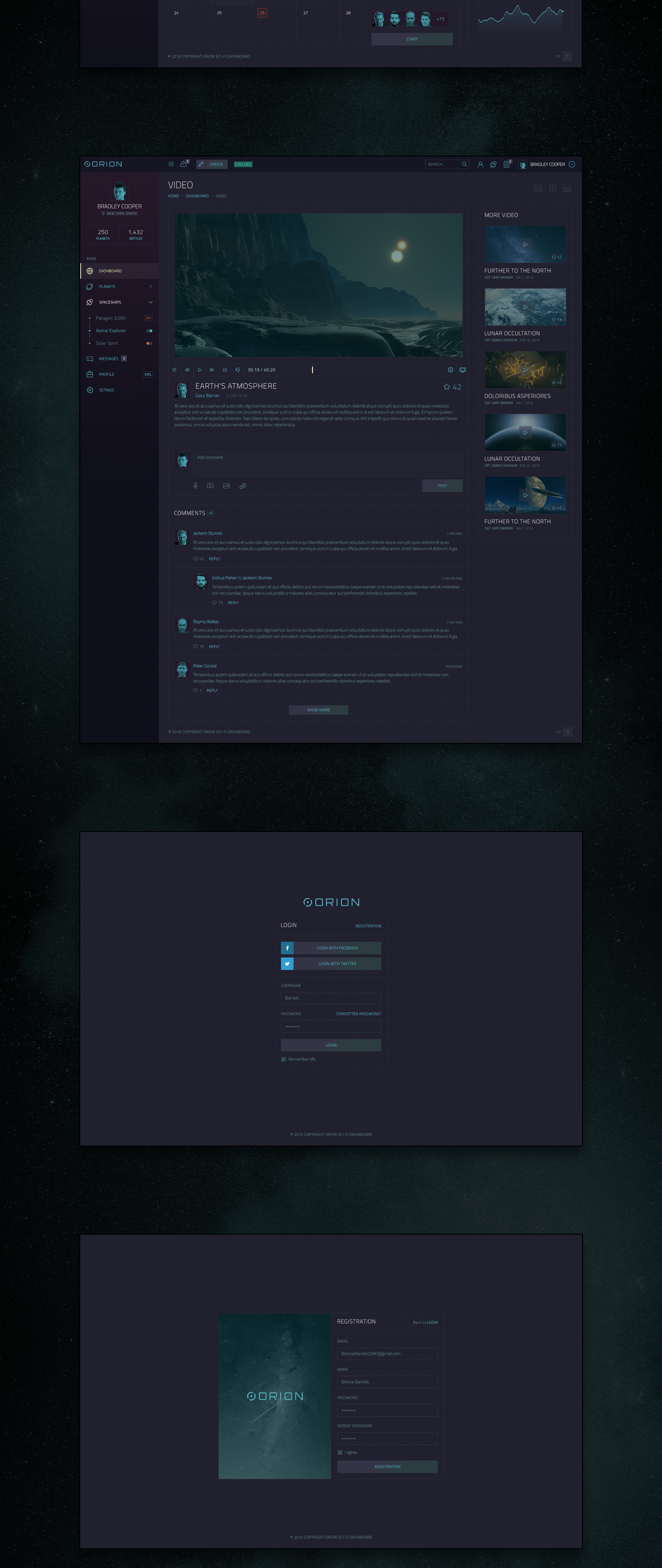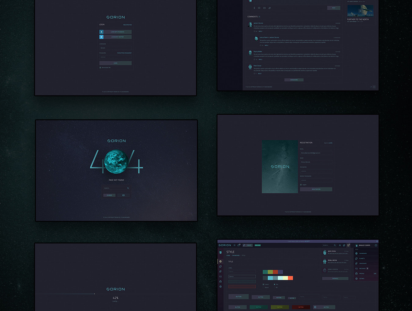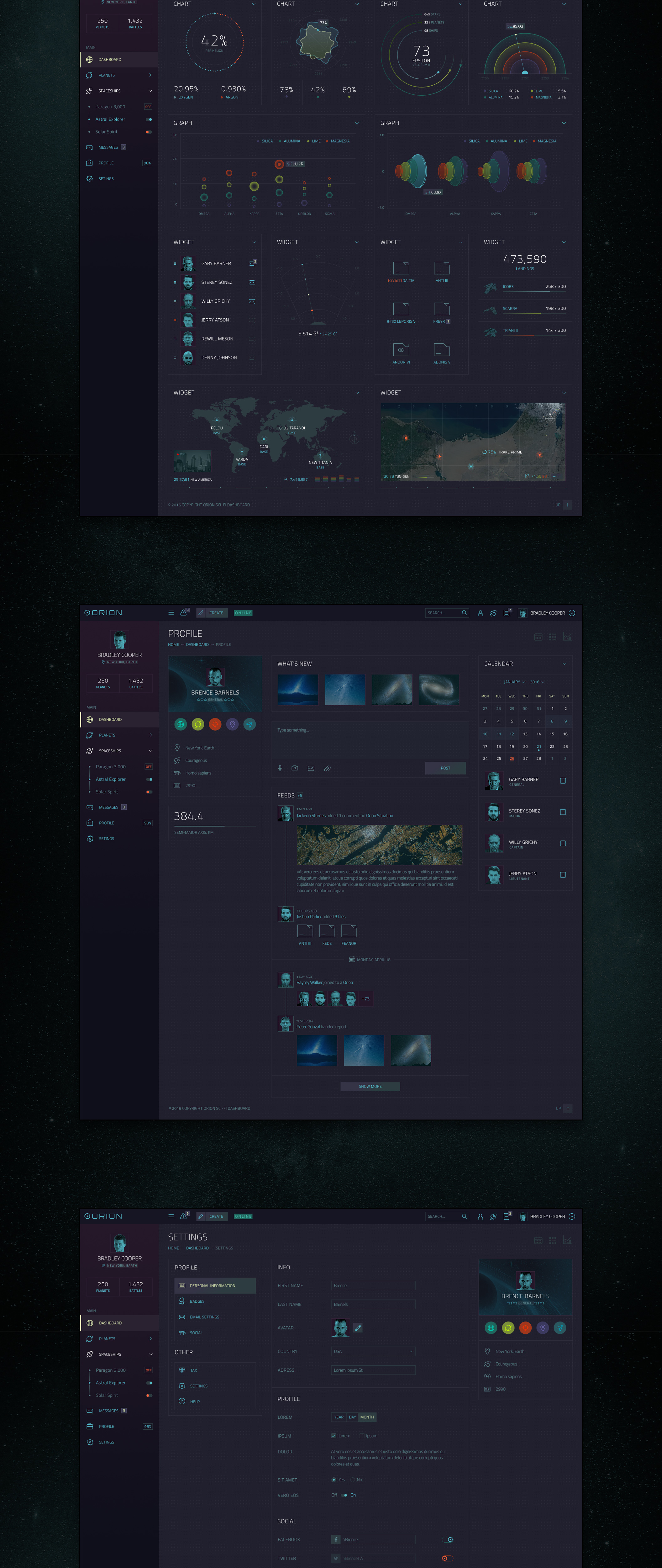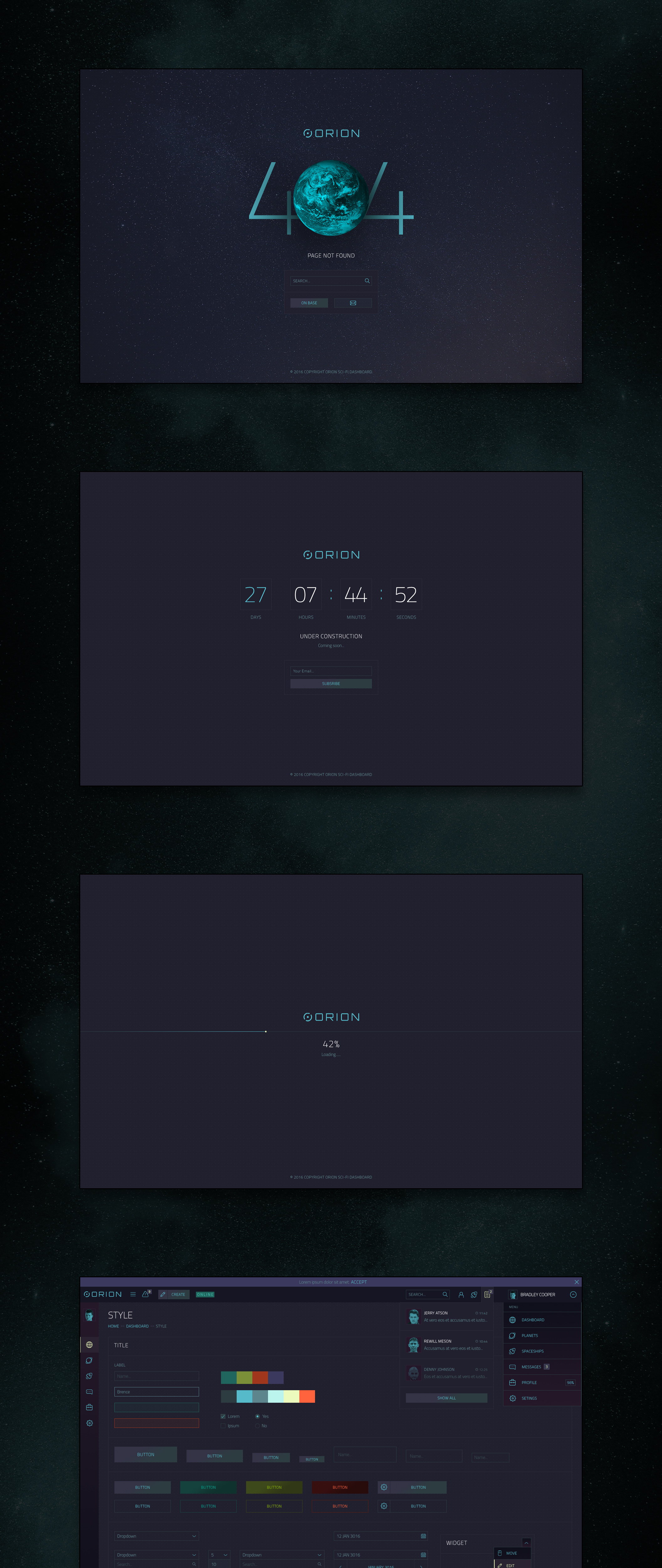 介绍ORION;用于Photoshop的现代创意仪表板模板主要针对科幻主题。猎户座包括70多个小部件,图表,图形,表格等等。所有的组件都是基于矢量的,可以完全自定义。图层是组织良好,并仔细命名。所有使用的字体都是免费的。
