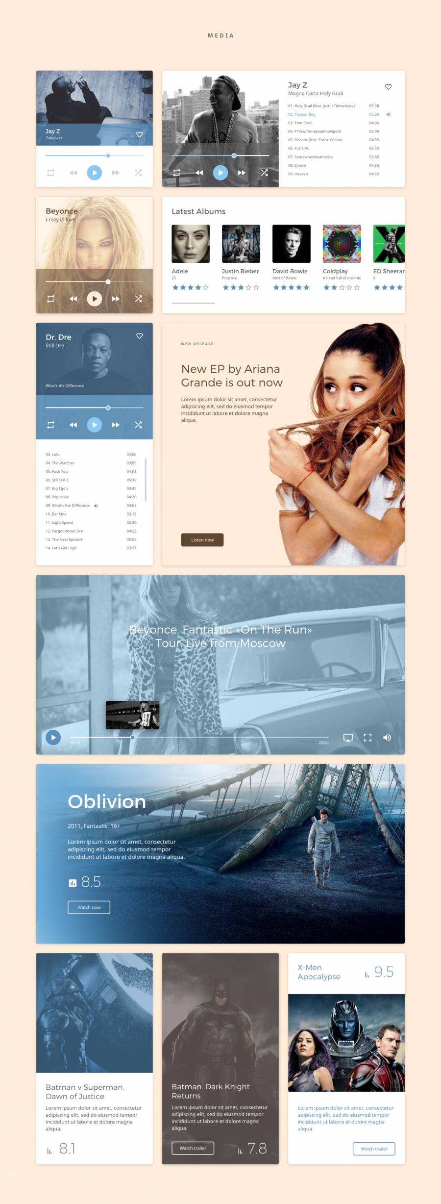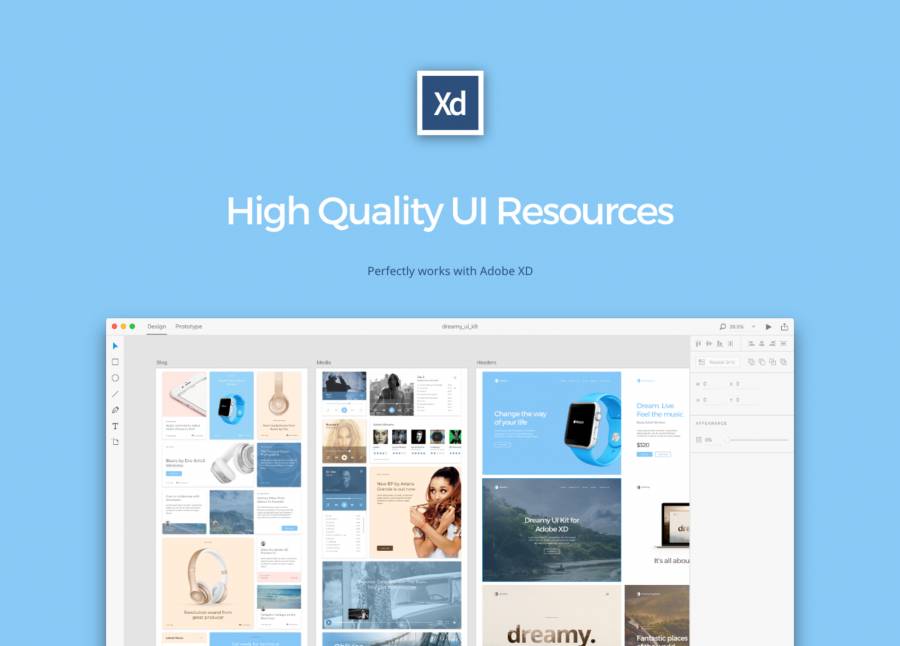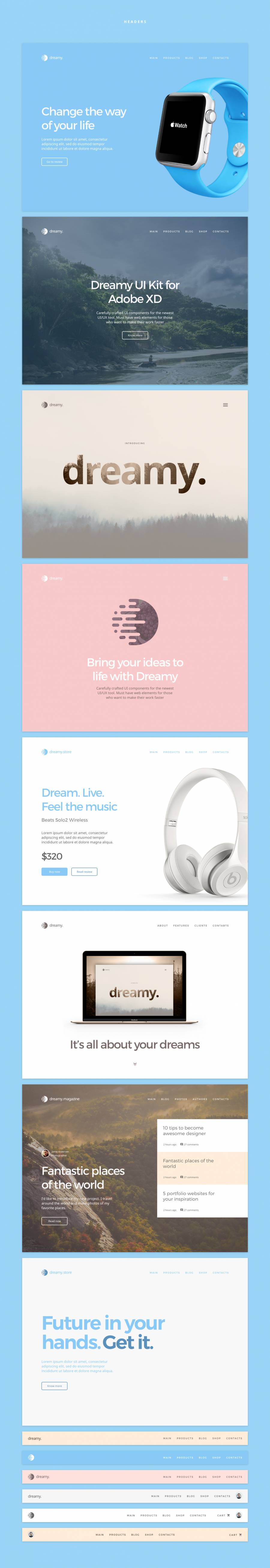 为Adobe XD,Dreamy UI工具包收集的UI资源