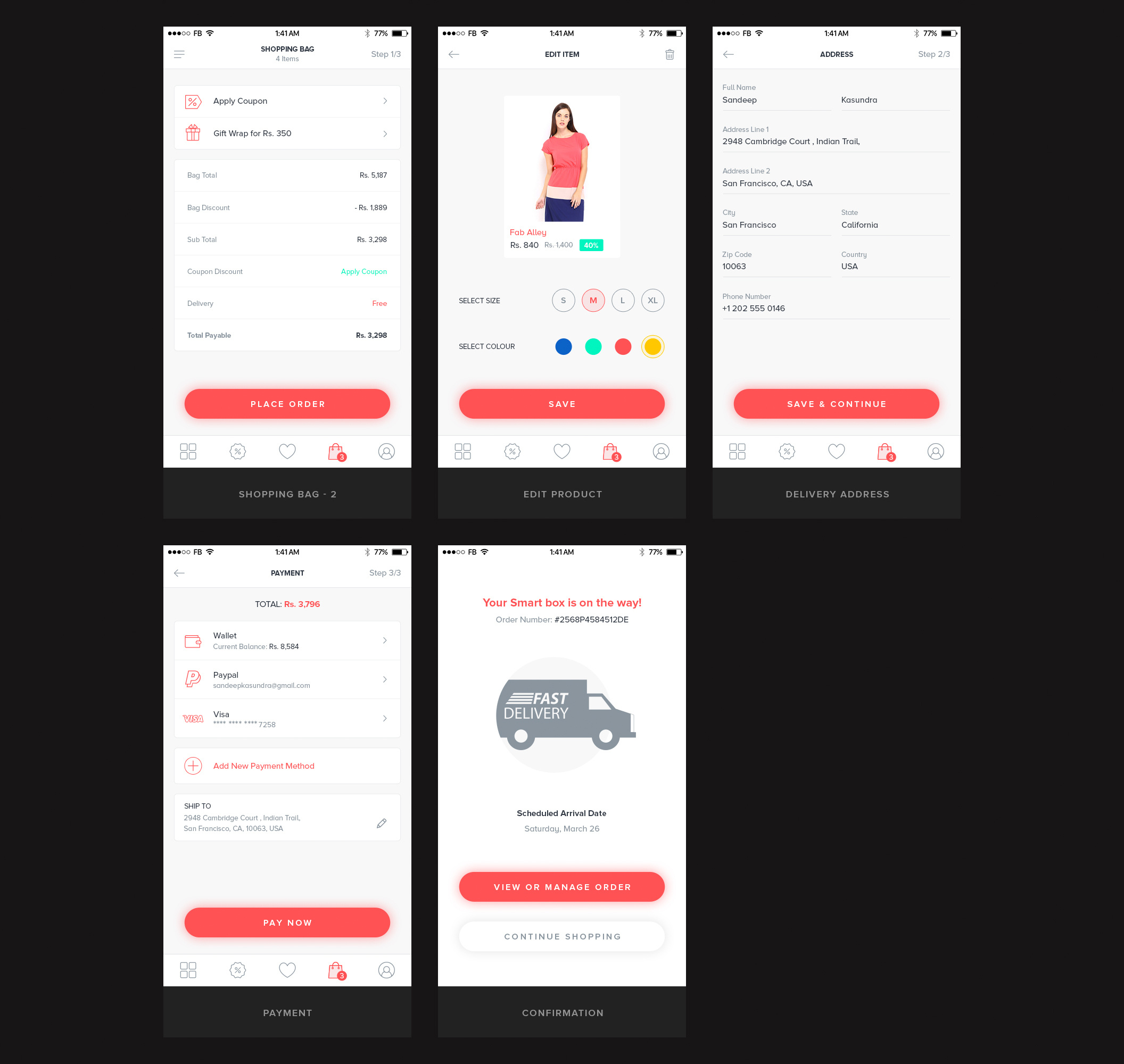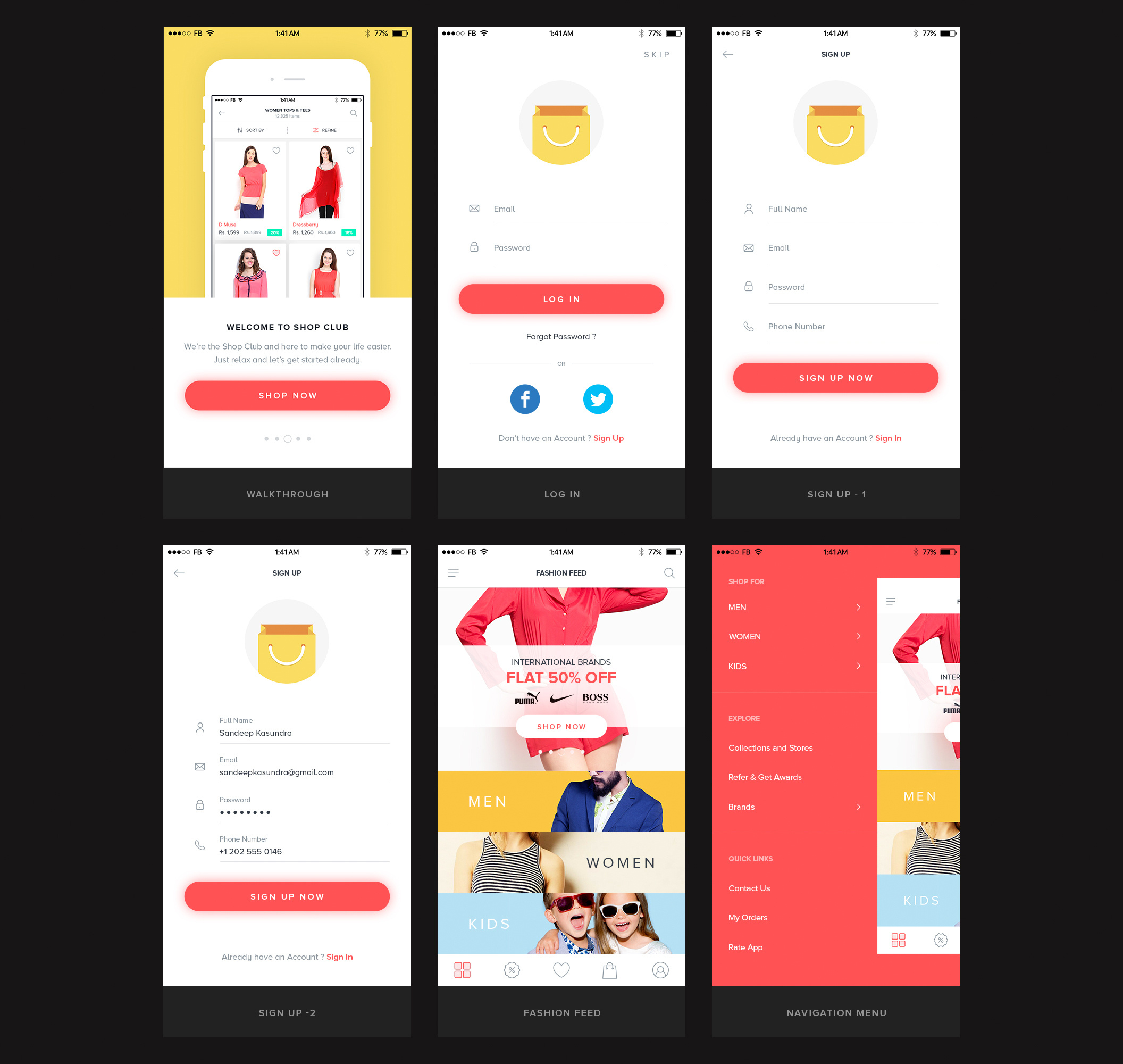 适合商业和非商业组织出售和分享他们的衣橱和配件。 PSD文件整齐地组织,屏幕分为登录和注册,演练,类别,配置文件,菜单,购物车,付款和结帐。 每个屏幕都是完全可编辑和可定制的,正式命名,视网膜准备好和PSD格式。